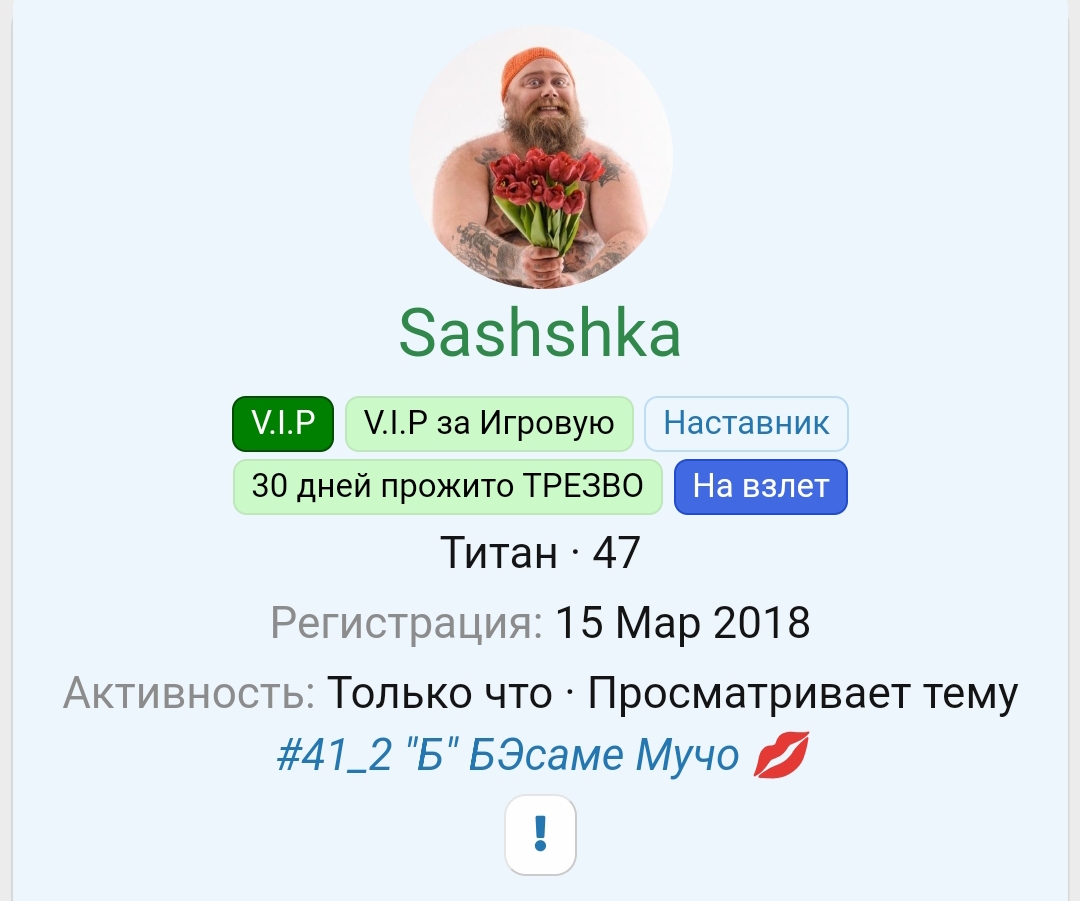 Саныч. написал(а): 46 !!!! Нажмите для раскрытия... Так когда это было, теперь сорок семь, борода и + 40 кг