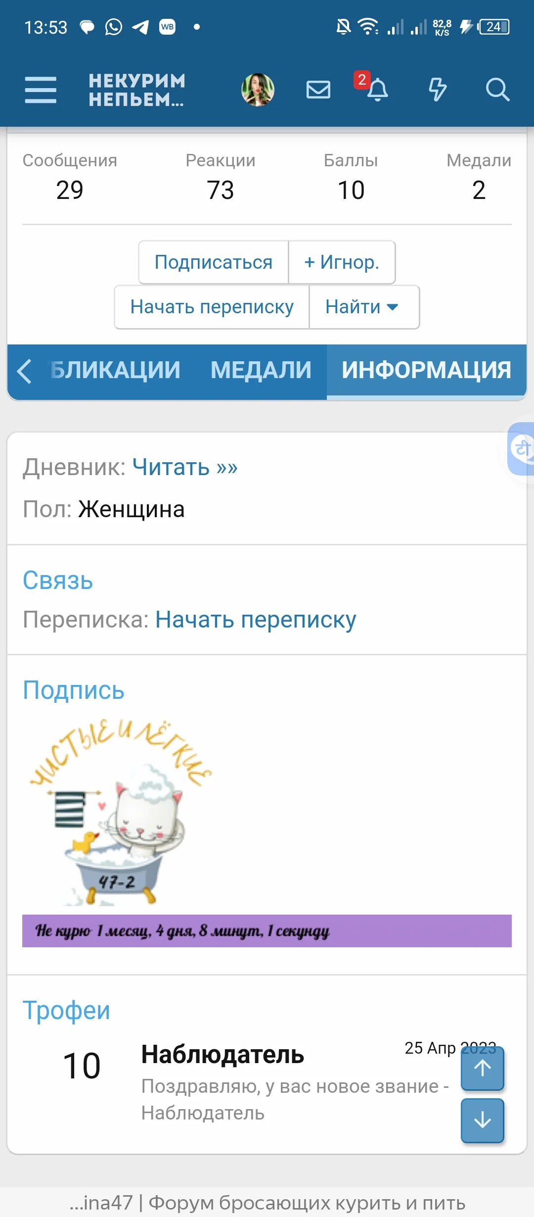 Дашенька, умничка что не куришь Рекомендую тебе для закрепления результата пройти ещё два тридцатидневных марафона, а потом уже решишь сама куда пойти дальше)
