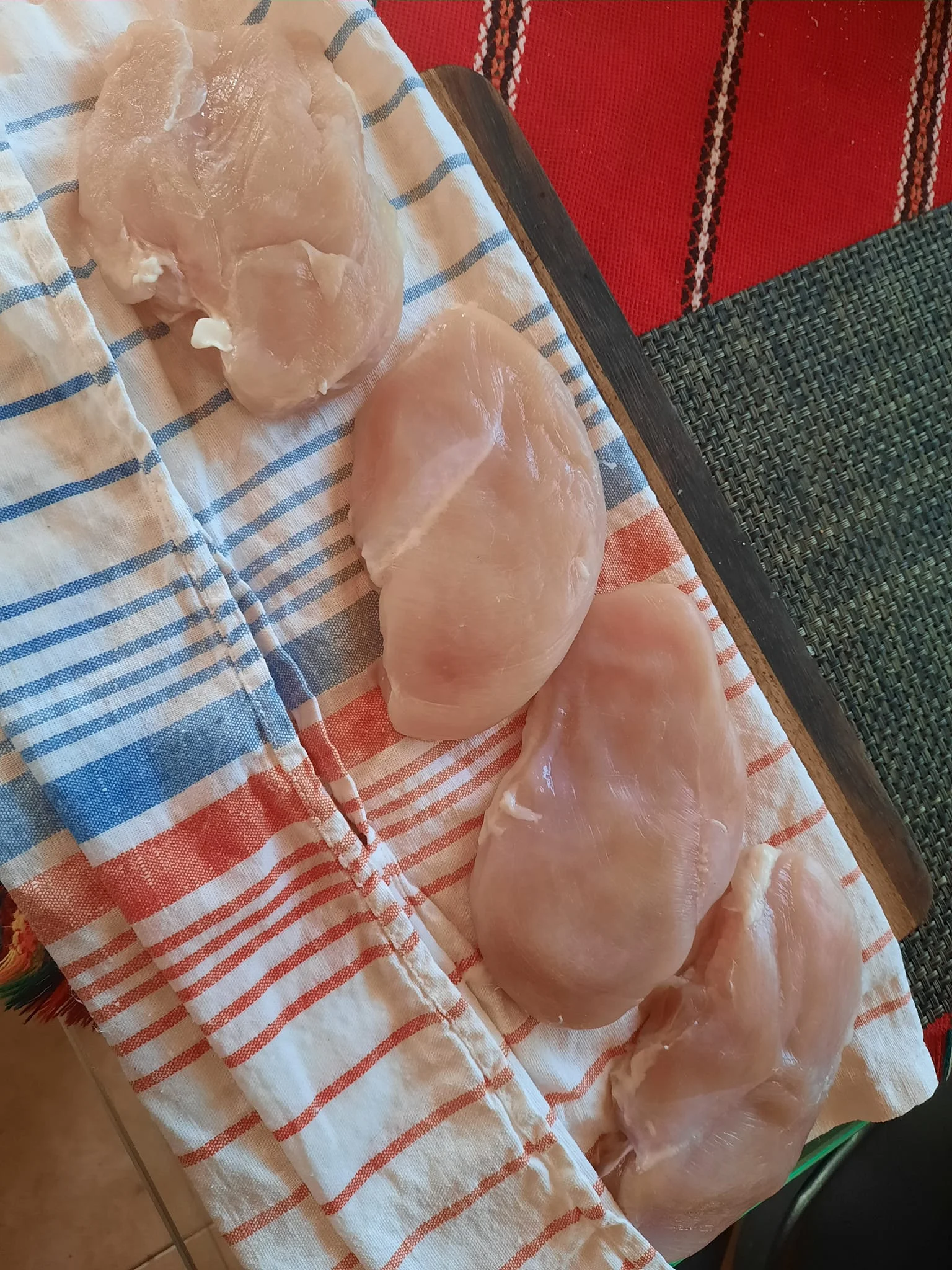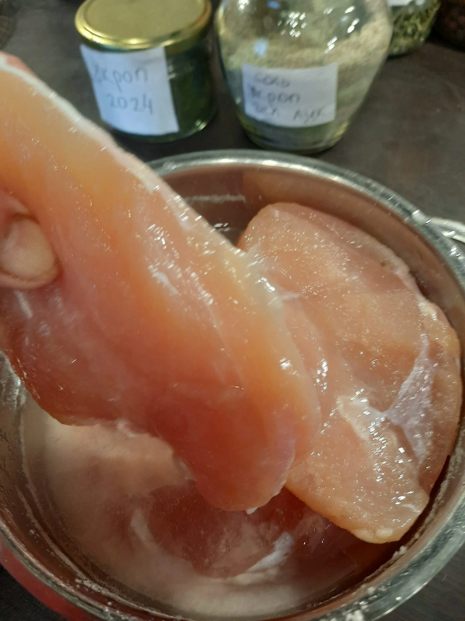 Смешала любимые сухие специи - копченая паприка, перец белый, прованские травы, сушеные укроп и петрушка, чеснок порошком, и обваляла наши груди в смеси этих приправ. Так душевно обваляла, втирала, массажировала.