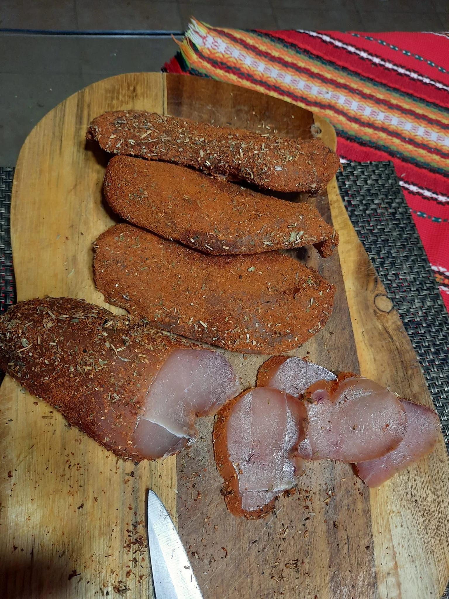 Пастырма/ бастурма/ пастрома - называйте, как хотите, - сыровяленая вырезка из какого-нибудь мяса. В разных странах и названия разные, и мясо разное.