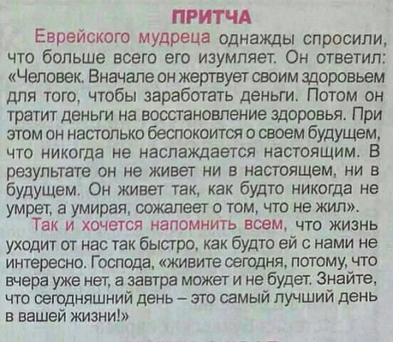 Зато настроение хорошее, и наслаждаюсь настоящим, как и советуют еврейские мудрецы и ты