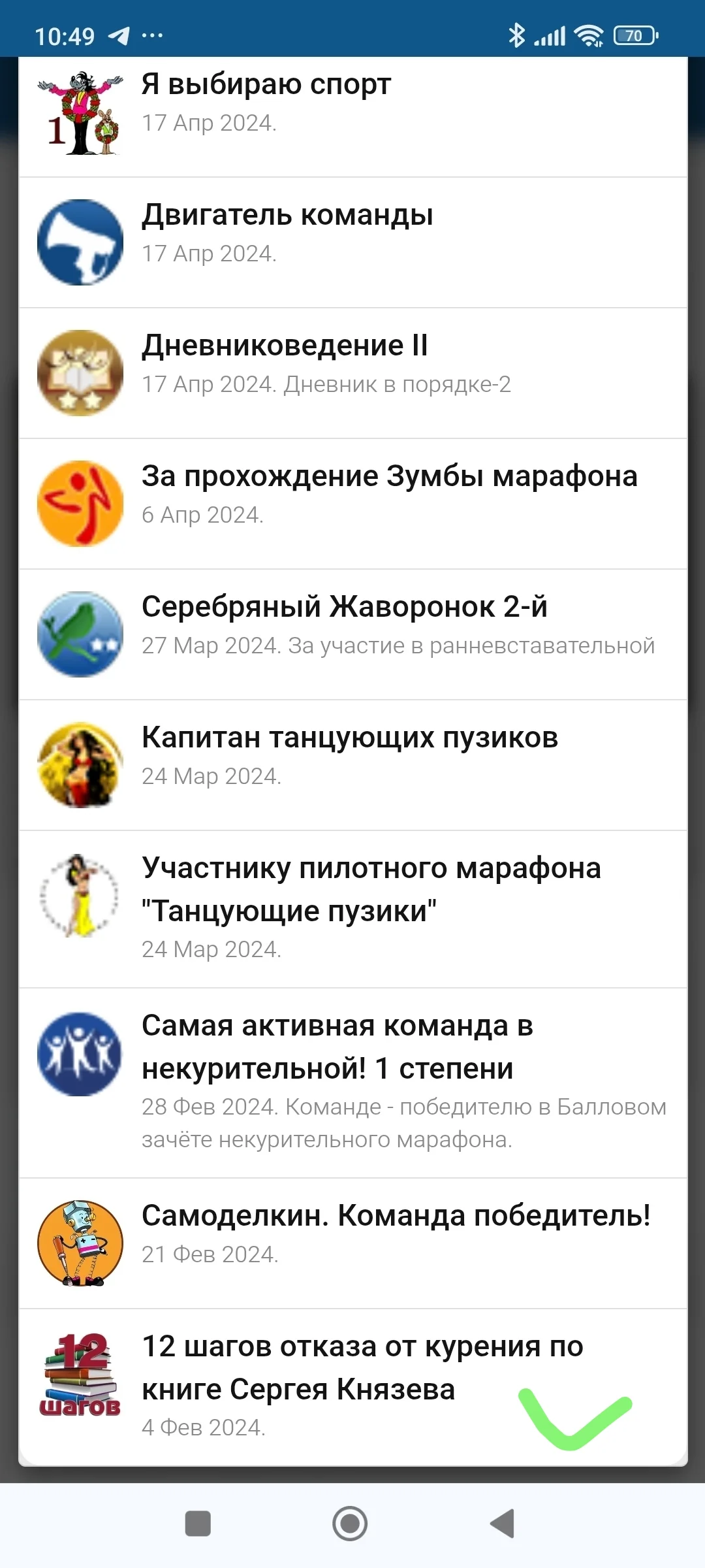 за прохождение всех шагов (10 шагов обязательно, 11-й и 12-й шаг по желанию) они получат индивидуальную медальку навсегда.