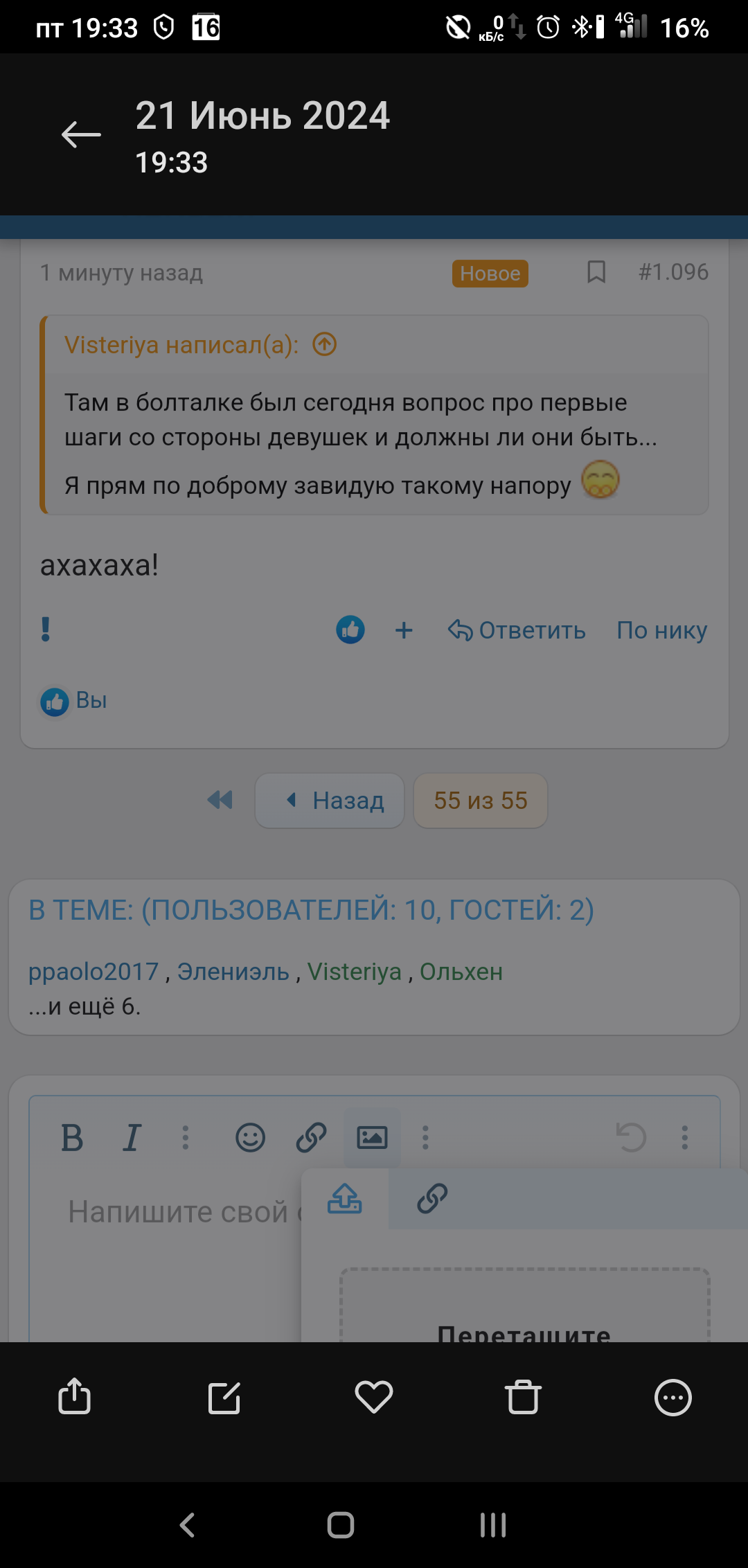 Элениэль Команда форума V.I.P Модератор игровых На взлет Сообщения 4.165 Реакции 8.765 Дневник Читать »» Не курю с 22.12.2025 Метод Табекс Лет курения 33 21 Июн 2024 #1.105 ppaolo2017 написал(а): 16 % заряда, я пока сольюсь Посмотреть вложение 2021025 Нажмите для раскрытия... давай заряжайся))) Буду ждать