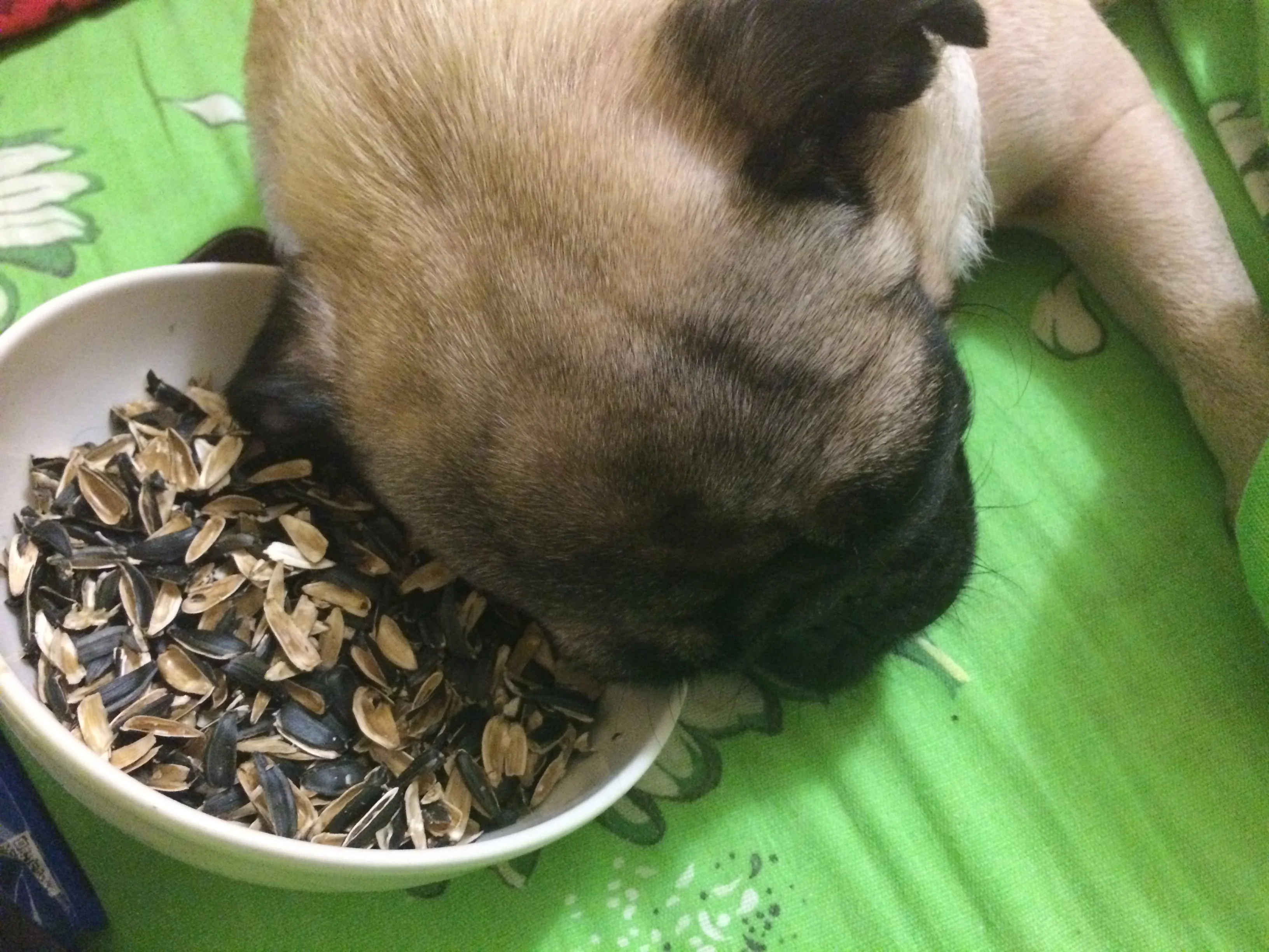 Вот вторая моя собача))уснула уже в тарелке с семечками))