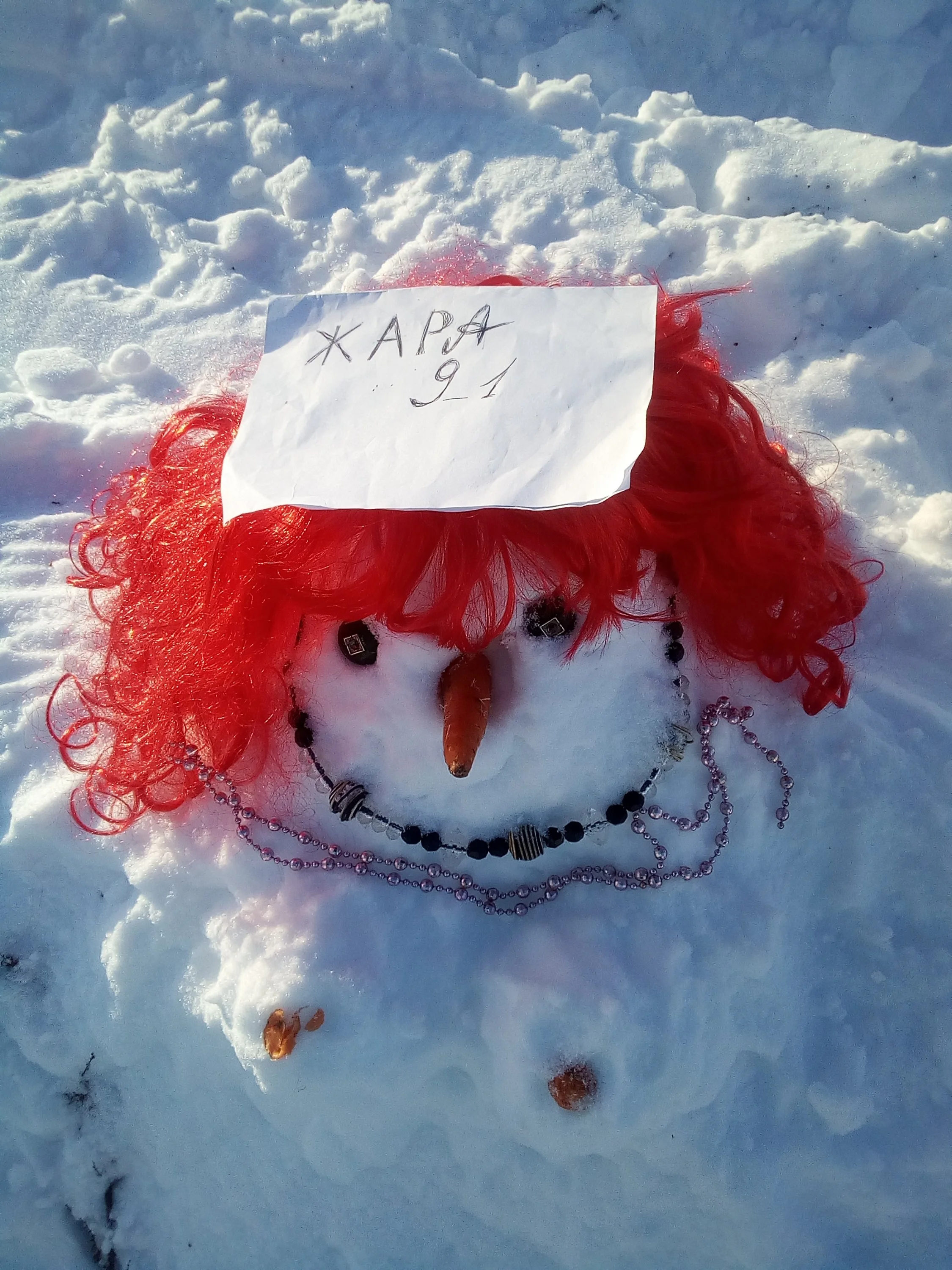 пояснения...на морозе -30 снег не слепляется в ком...рассыпается в руках...сотворила что могла)))