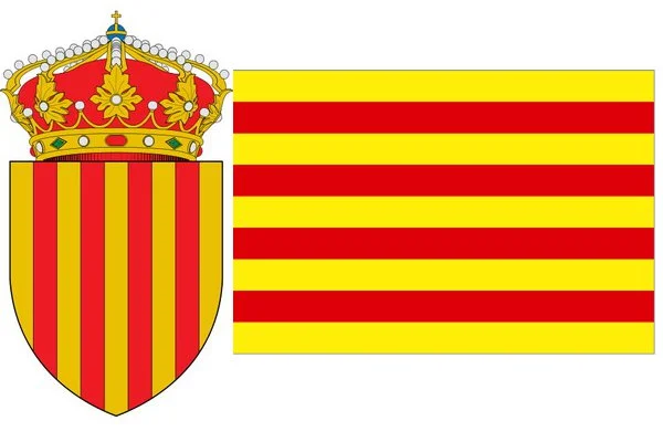 Существует две версии появления каталонского герба: во времена Франкской империи смертельно раненный граф Гифред Волосатый окровавленными пальцами оставил след четырех красных полос на своем золотом щите.