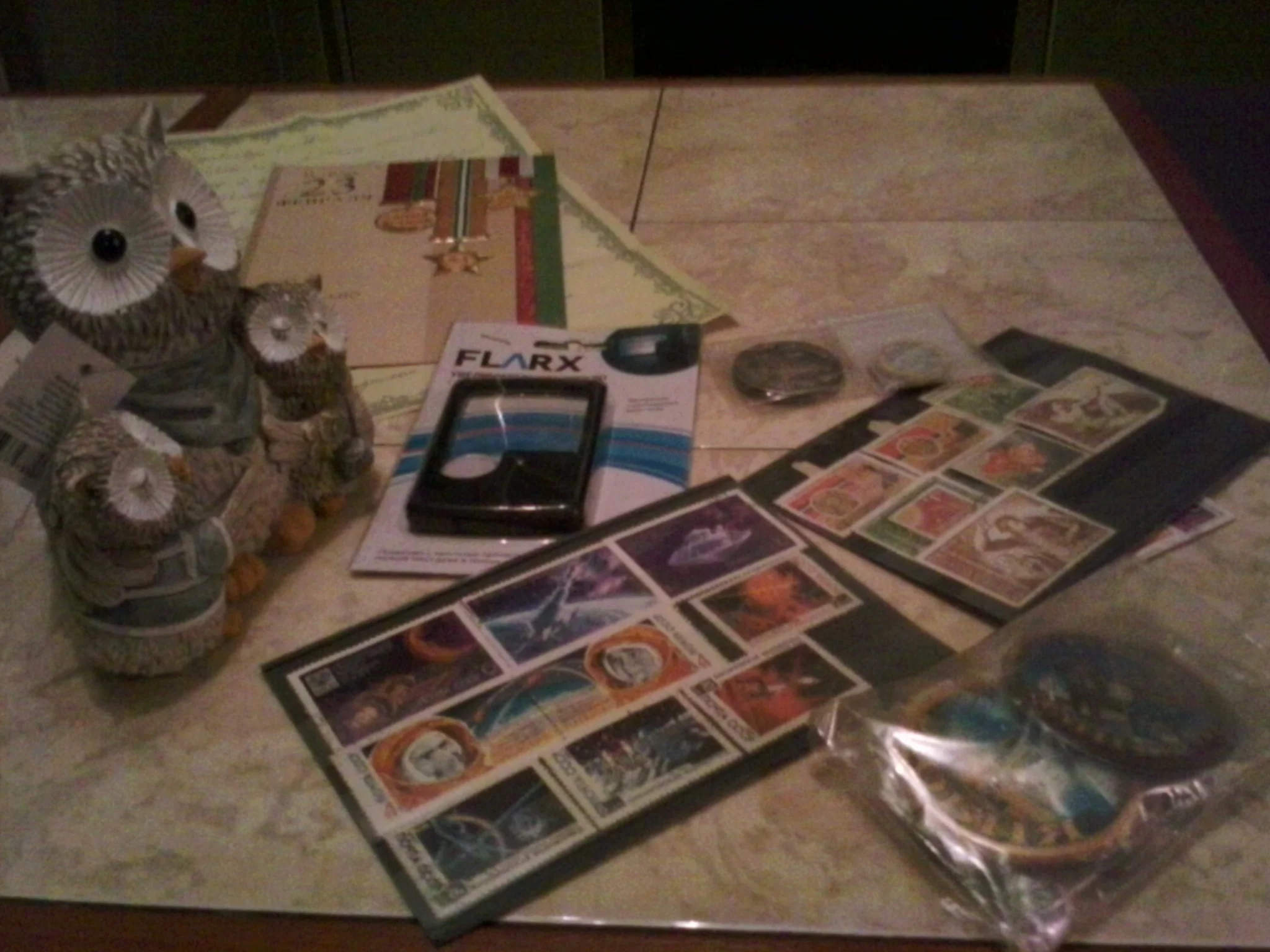 Моя коллекция пополнилась! Мне приехали от Василия К. марки, монетки и даже лупа, для разглядывания коллекции! А еще открытка с письмом, магнитики и сова - копилка! Сова - чтобы было больше мудрости. Очень ценно, у меня с мудростью явно большие проблемы))) Я очень рад! Спасибо))