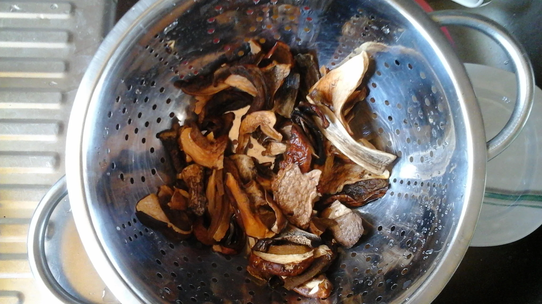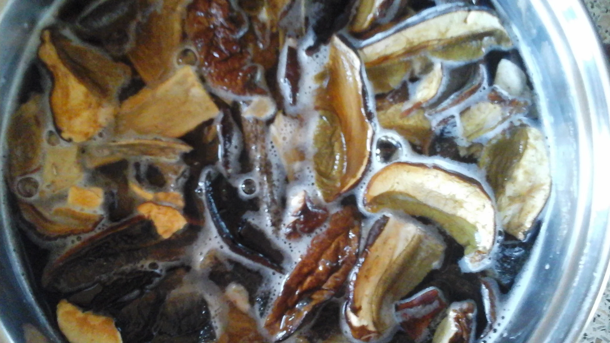 бульон из-под грибов процеживаю, ставлю на плиту