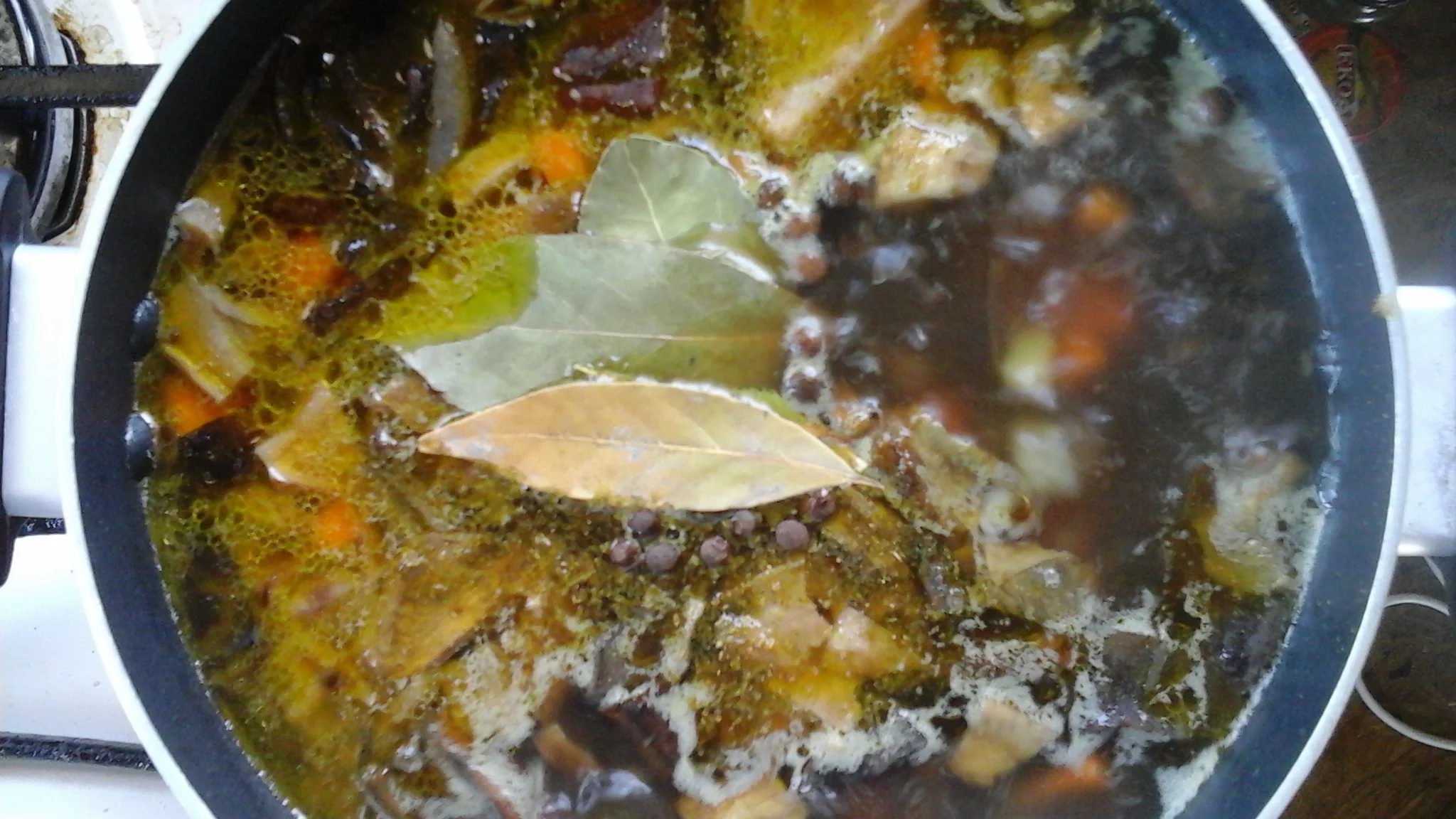 варим до готовности, в конце закидываем лавровый лист и перец душистый горошком, солим