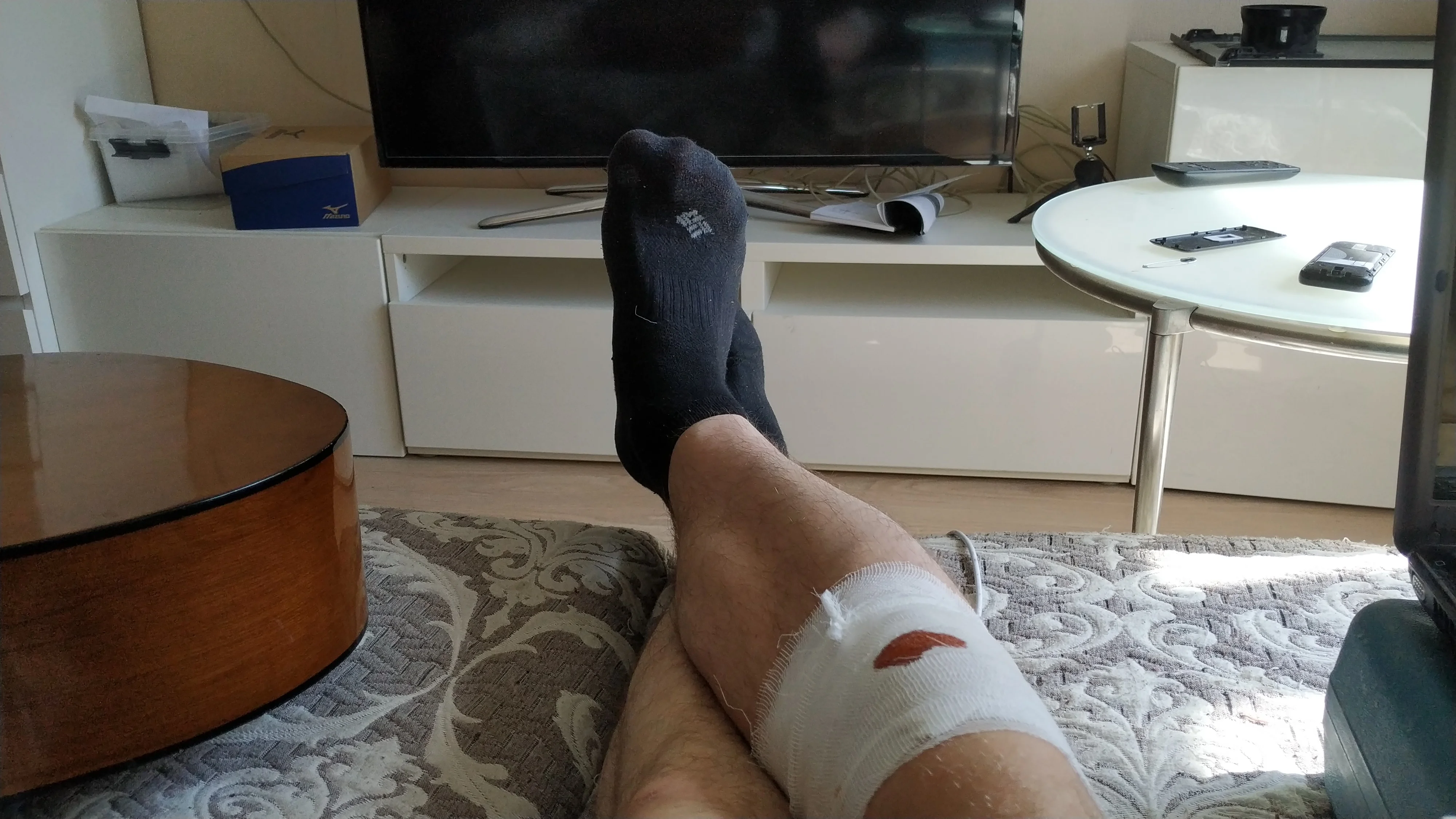 Да так- бандитская пуля, коленку замял немного.