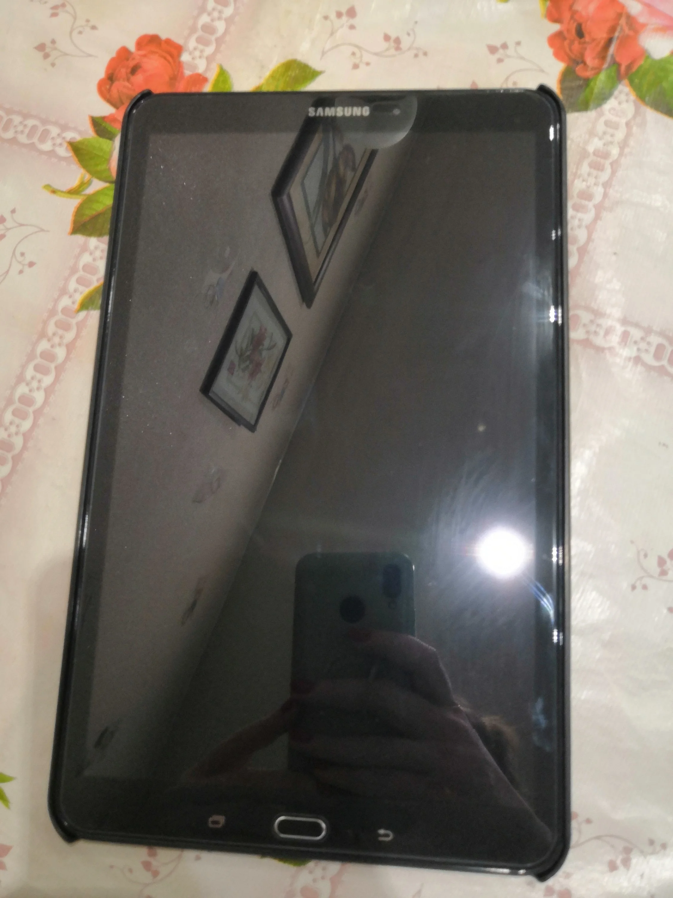 Кароче вот. Углы надо не сразу к стеклу клеить, тогда конструкция не налазит на планшет, а сначала приложить стекло, выровнять и приклеить углы в этом положении. Потом плёнку отодрать и наложить стекло на планшет по шаблону. В общем, больше я ничего не придумала, и вот что получилось