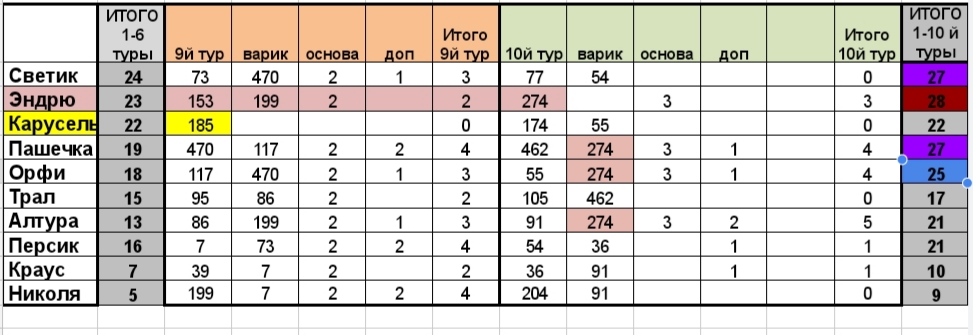 Убралась в шкафу, сварила борщ, ну и еще всяких там обязанностей исполнив, могу опубликовать резы 7-8 туров!