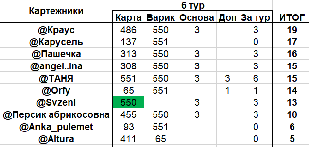 Резы 6 тура: