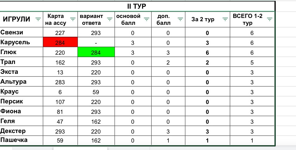 Вот результаты 2 Тура!