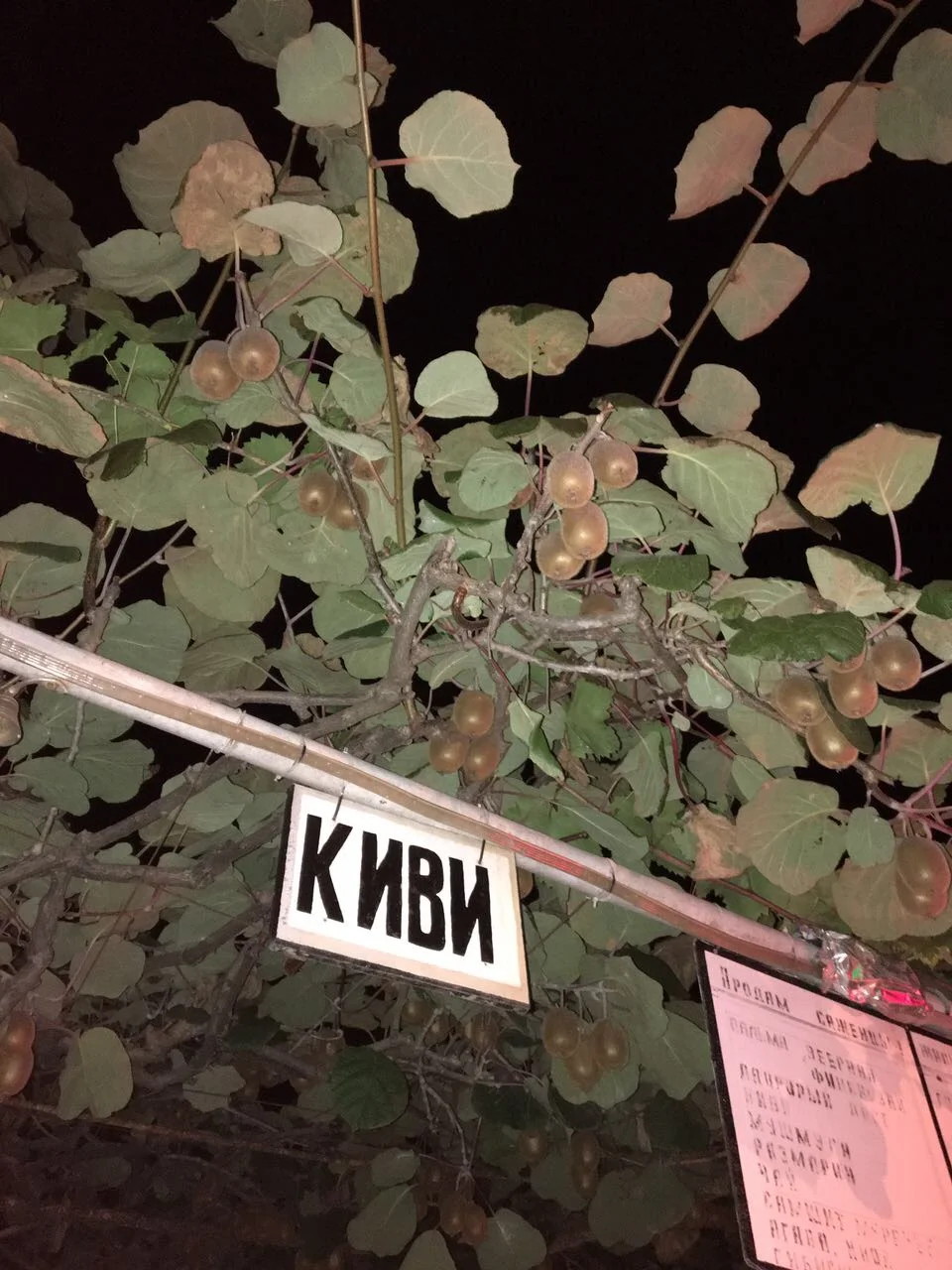 Викуль, лови фотку, тут правда нифига не понятно, но это навес типа крыши и по верху кустится киви , всегда думала, что это дерево, а это куст типа лозы виноградной...