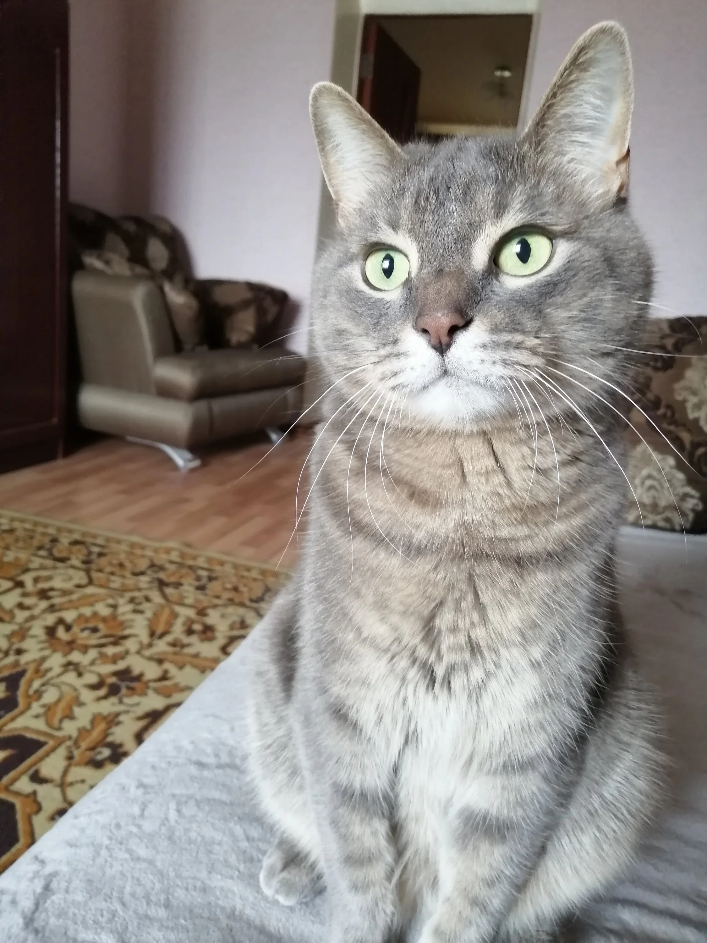 И сразу же залез на место, где я обычно лежа медитирую. И начал там чесаться, и даже есть не стал и обследовать. Конкурент, однако)