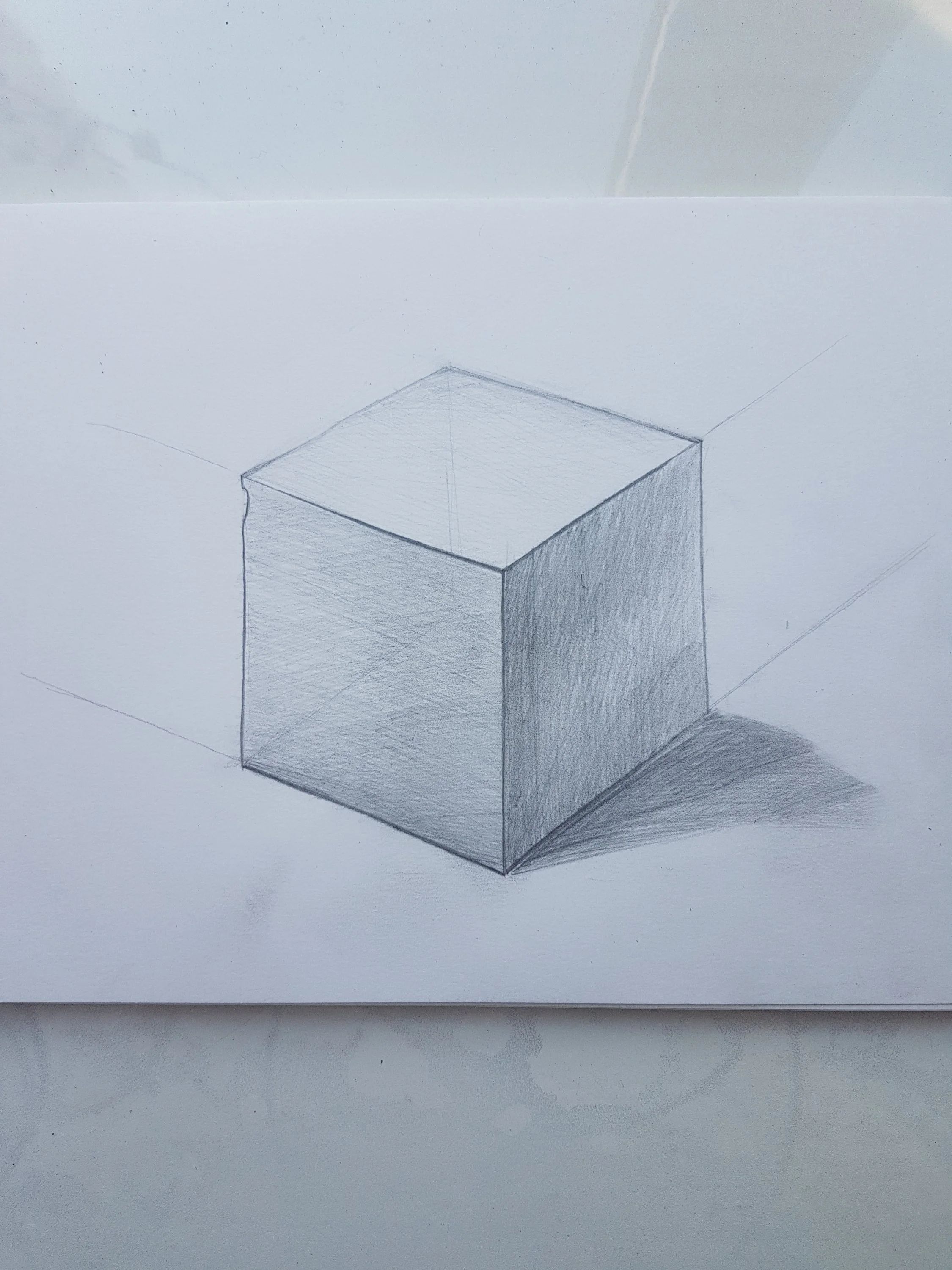 Границы лучше сразу затирать, только тенями и светом грани выделять, оттеняйте фон чтобы сделать поверхности куба светлее )Просто у меня неявная, но граница получается. Особенно если там где штриховки совсем немного надо ((
