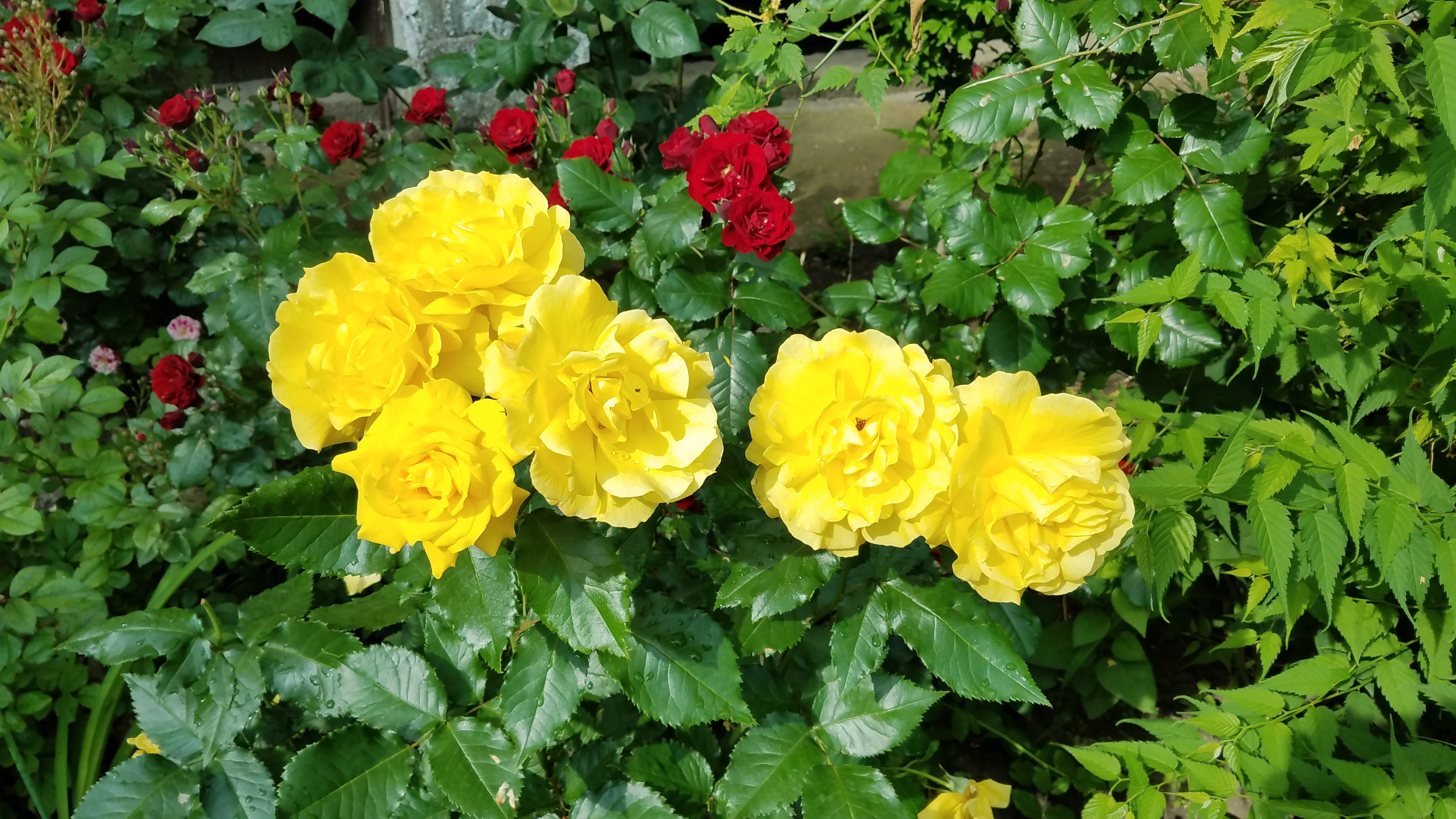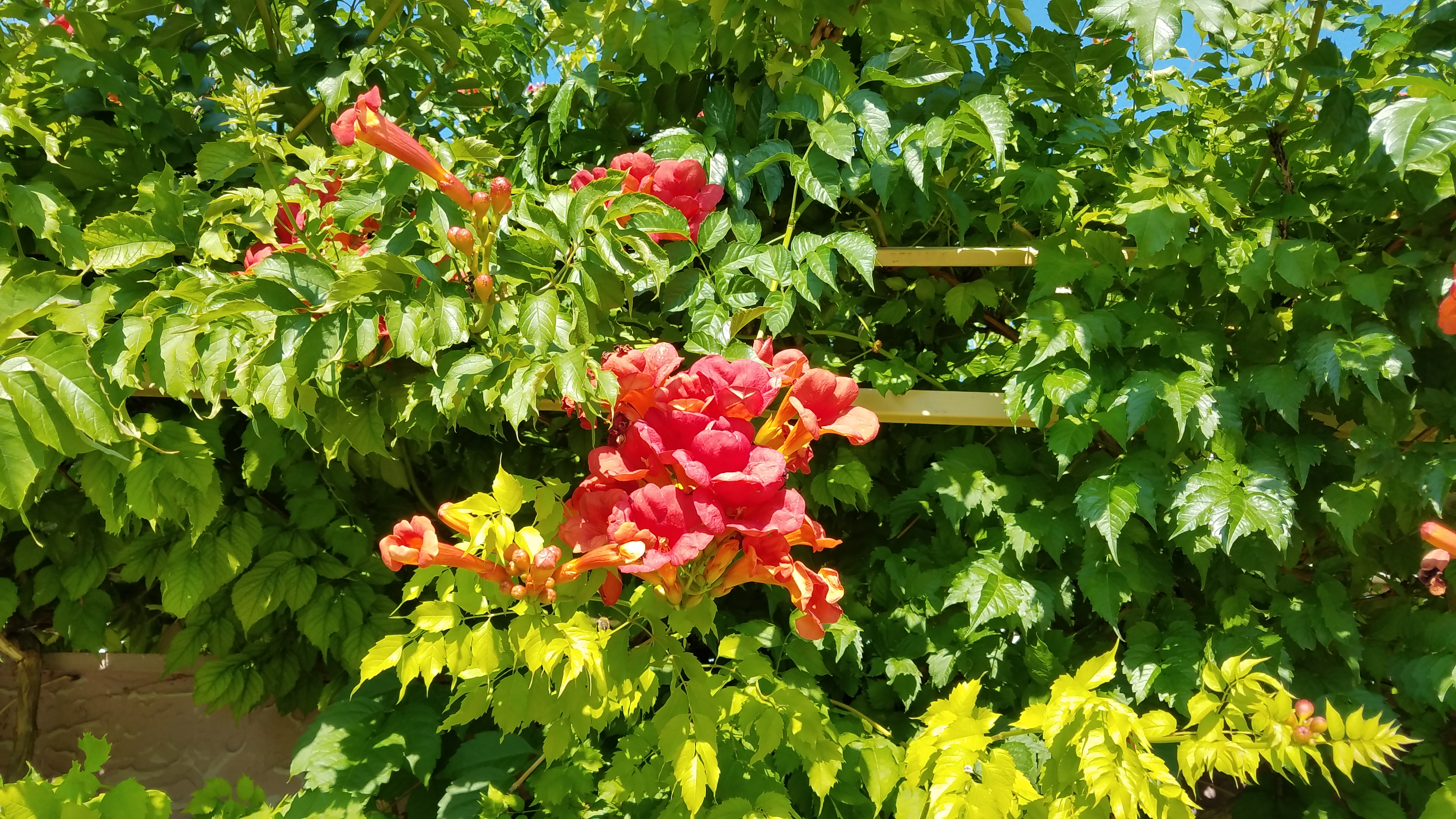 На улице просто красота от красок цветов и зелени.