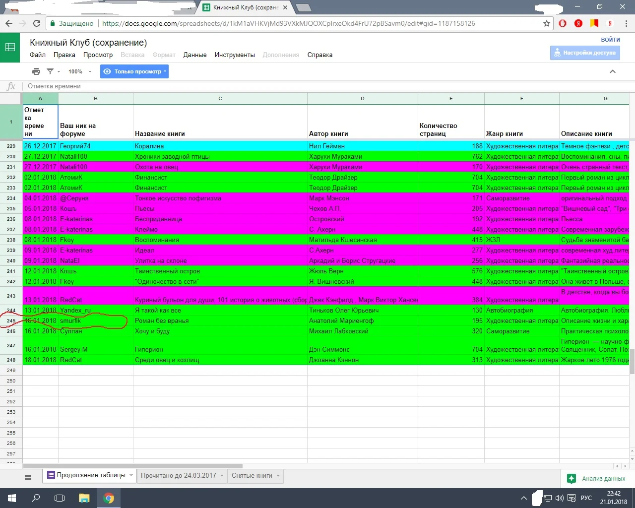 Пасиба....поняла.Елена ты в списке, во вкладке Продолжение таблицы строка 245Посмотреть вложение 551332