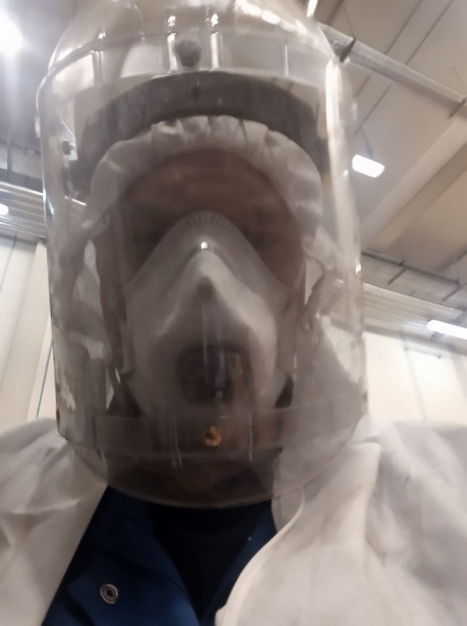 Нет не всю конечно. Только когда на зачистке стою. Разобрали мотор, намыли запчасти, мы их потом чистим от грязи, от ржавчины, от краски, и так далее. Вот пока чищу, да в таком виде.Фига себе инопланетянин
