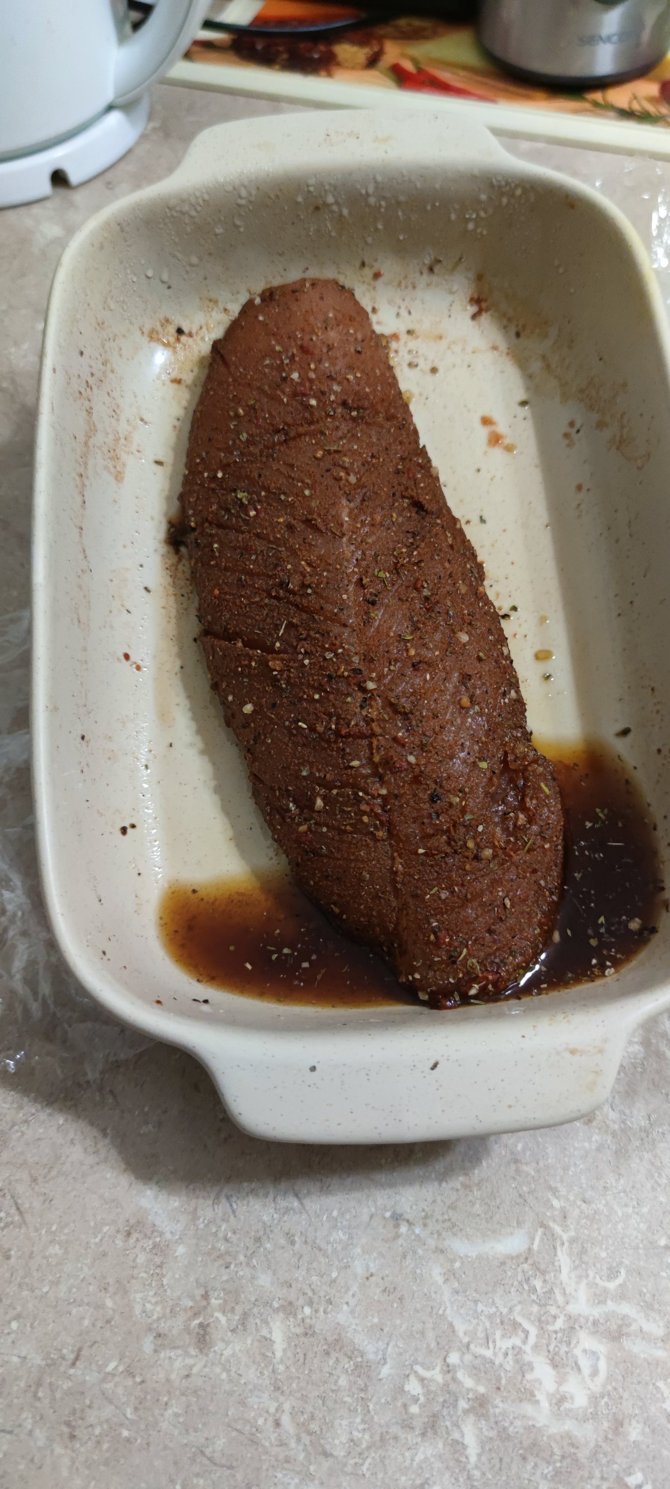 Завидываю...по белому. У меня спецпоставок сейчас нет. Но магазин где беру обычно мясо вроде как норм - без нареканий.вчера тёща зарубила очередную индюшку. сегодня взял филе грудки. примерно 1 кг. разрезал на 4 длинные не толстые ломтика. начну неторопливый процесс))))) благо что индюшка не магазинная, а то я не очень доверяю приготовлению мяса без термической обработки (паразиты могут быть).