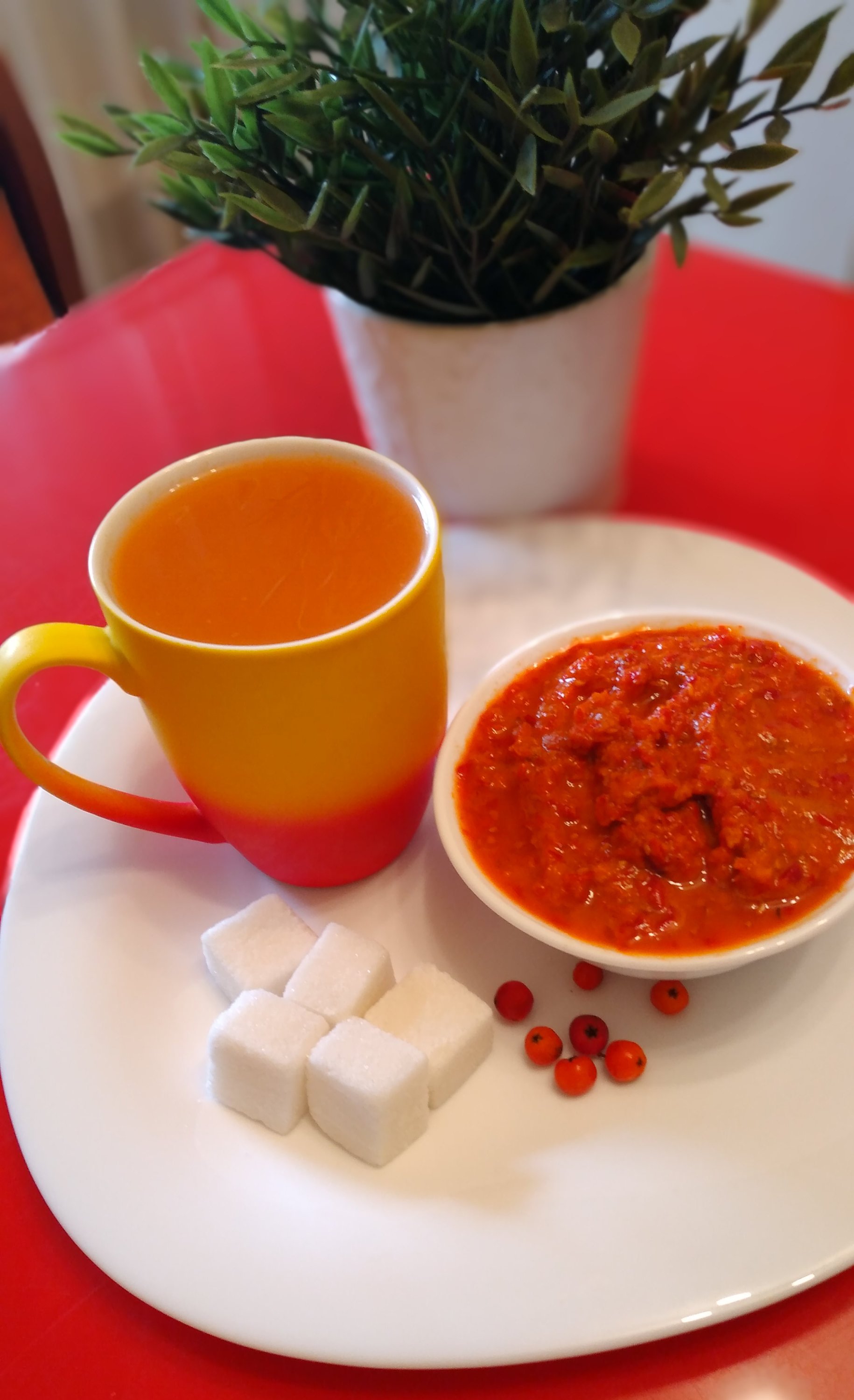 Рябину собрать, прокрутить, положить в термос, добавить сахар и дать настояться.