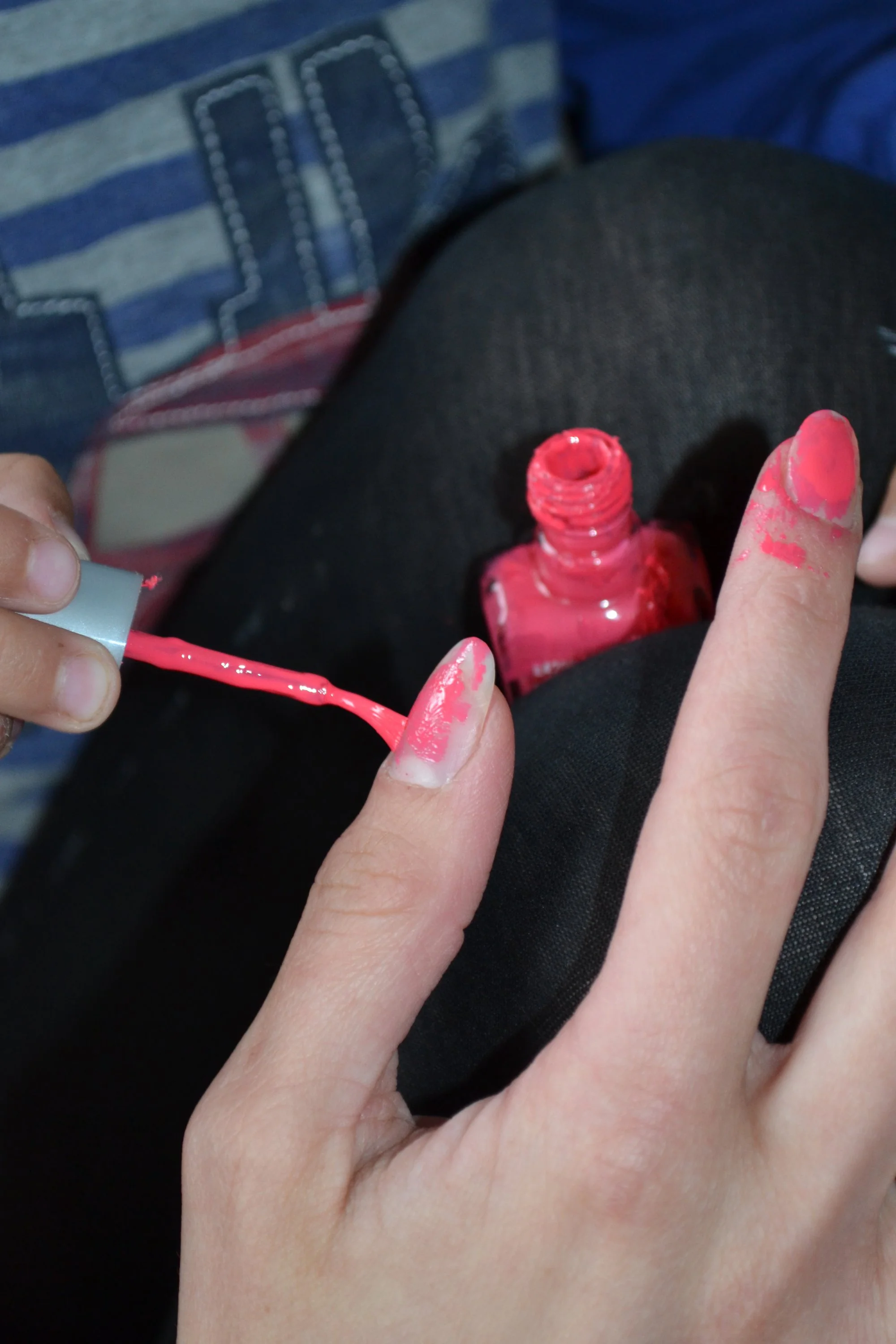 Сама я использую только обычный лак. Прозрачный или любого оттенка красный-бордо-иногда розовый .