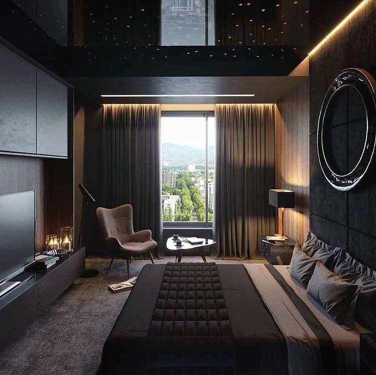 Блин, я бы в окно вышла из такой комнаты)) в интерьере мне больше скандинавский стиль и кантри))у меня в спальне даже стены чёрные с потолком) Чёрный ван лав