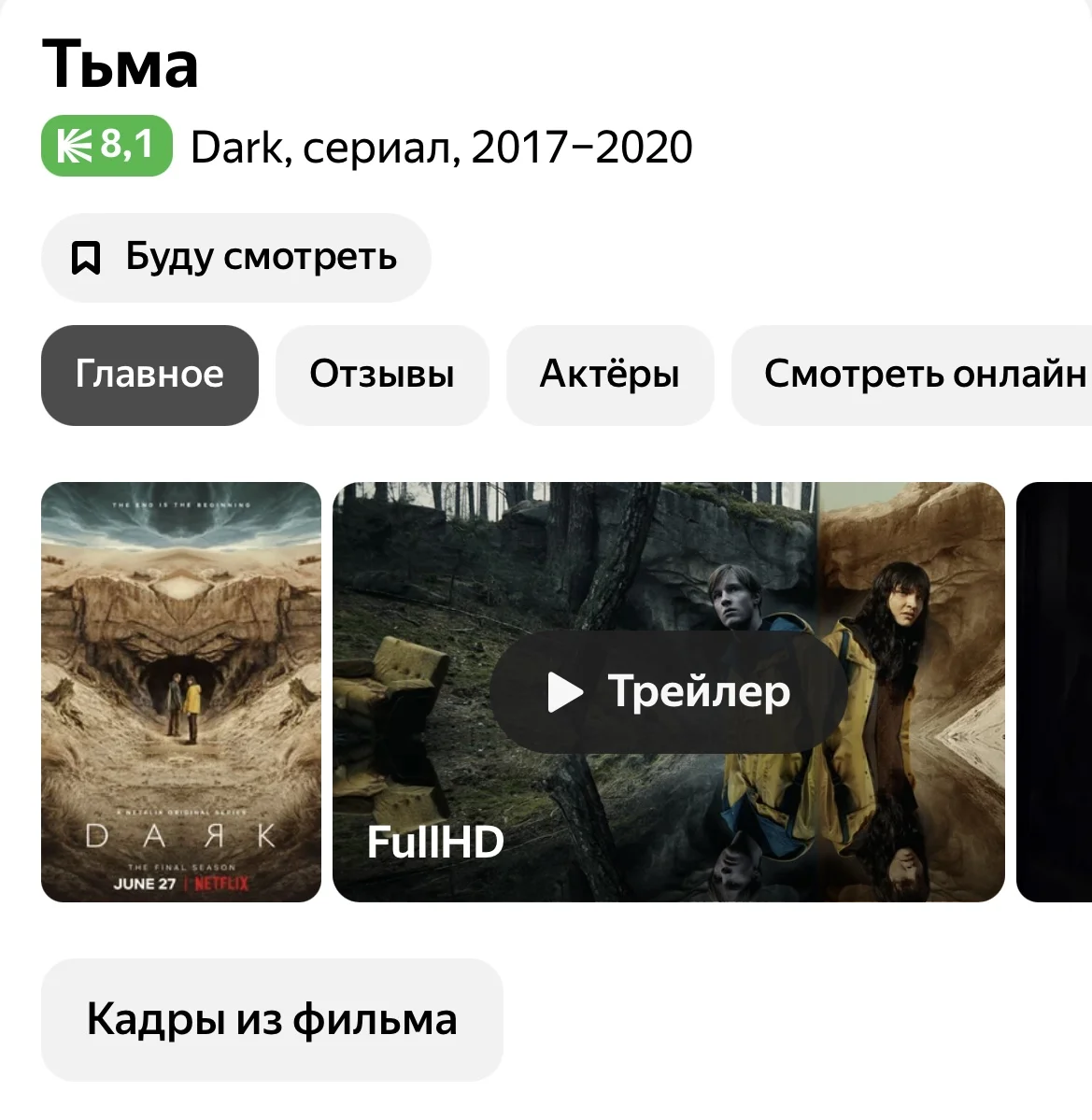 Этот сериал? Я смотрела давно, плохо помню, но кажется это экранизация, или я путаю.Ага, почитать, потом посмотреть или наоборот - эт святое. Как же я была расстроена, досмотрев Тьму и узнав, что это только сериал???![]()