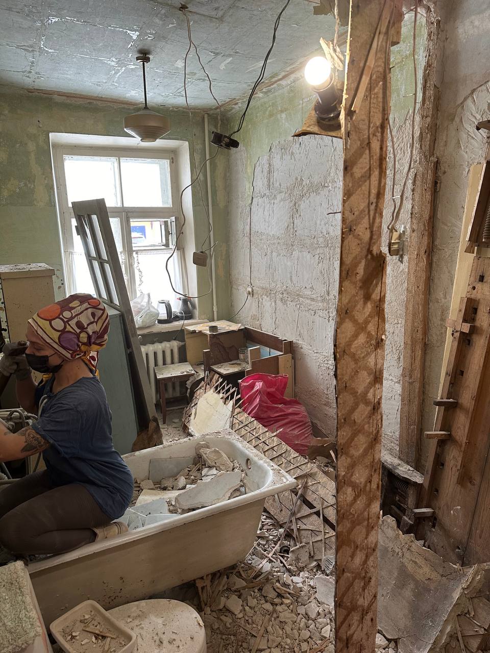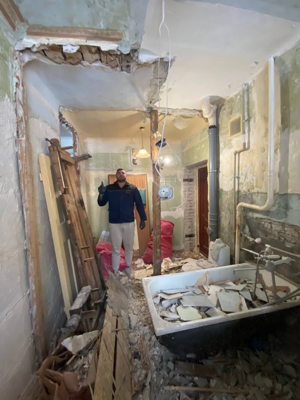 @Даянка, сын мой никогда не отличался аккуратностью. Все сломал, ничего не убирая, теперь кухня, санузел и прихожка единое целое... Потом вывоз мусора вызвал, все убрали...
