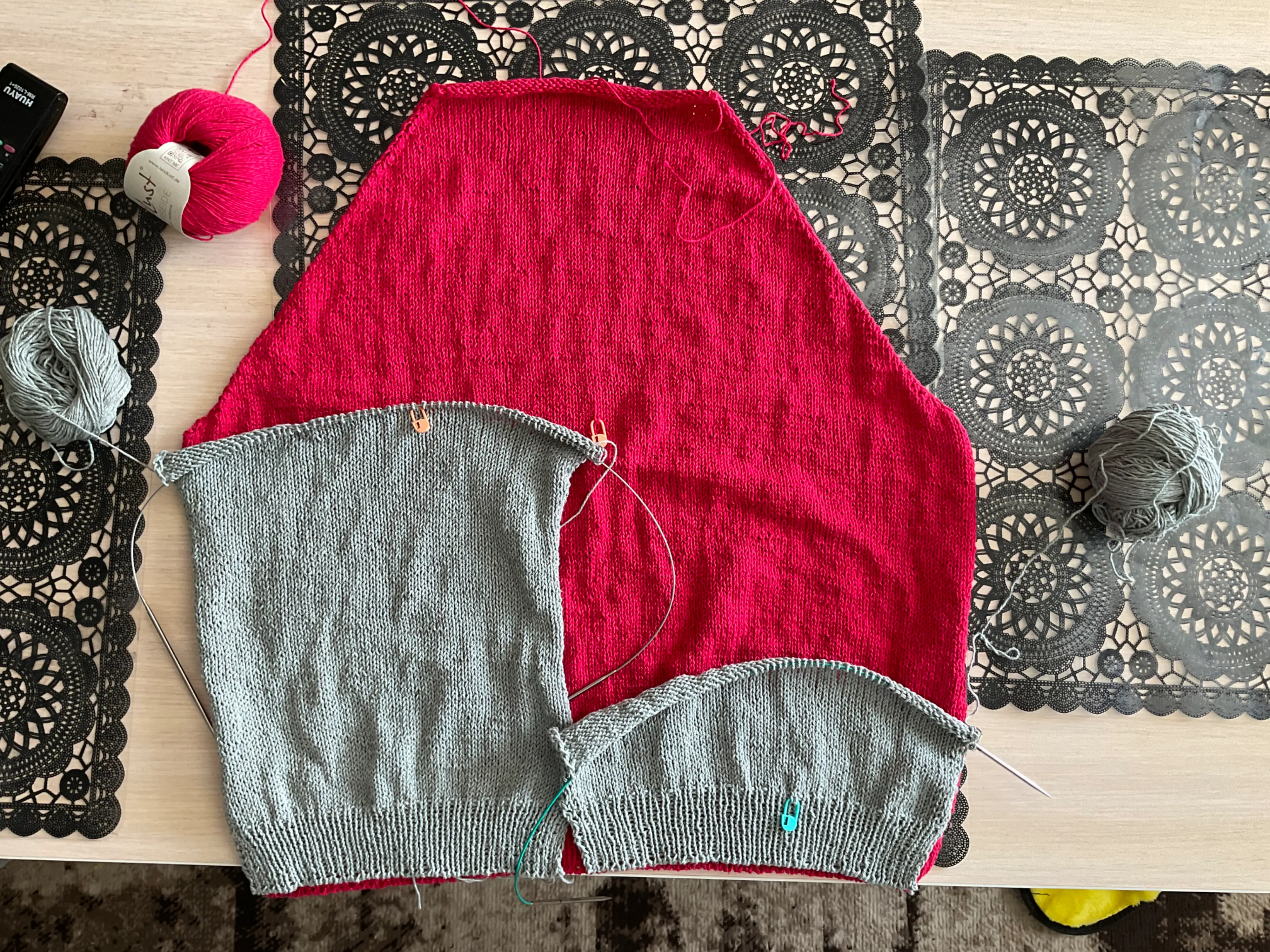 Было IMG_2714.webp стало IMG_2718.webp вязала две полочки одновременно, но в одной ошиблась на 10 петель при наборе. Пришлось распустить и перевязать