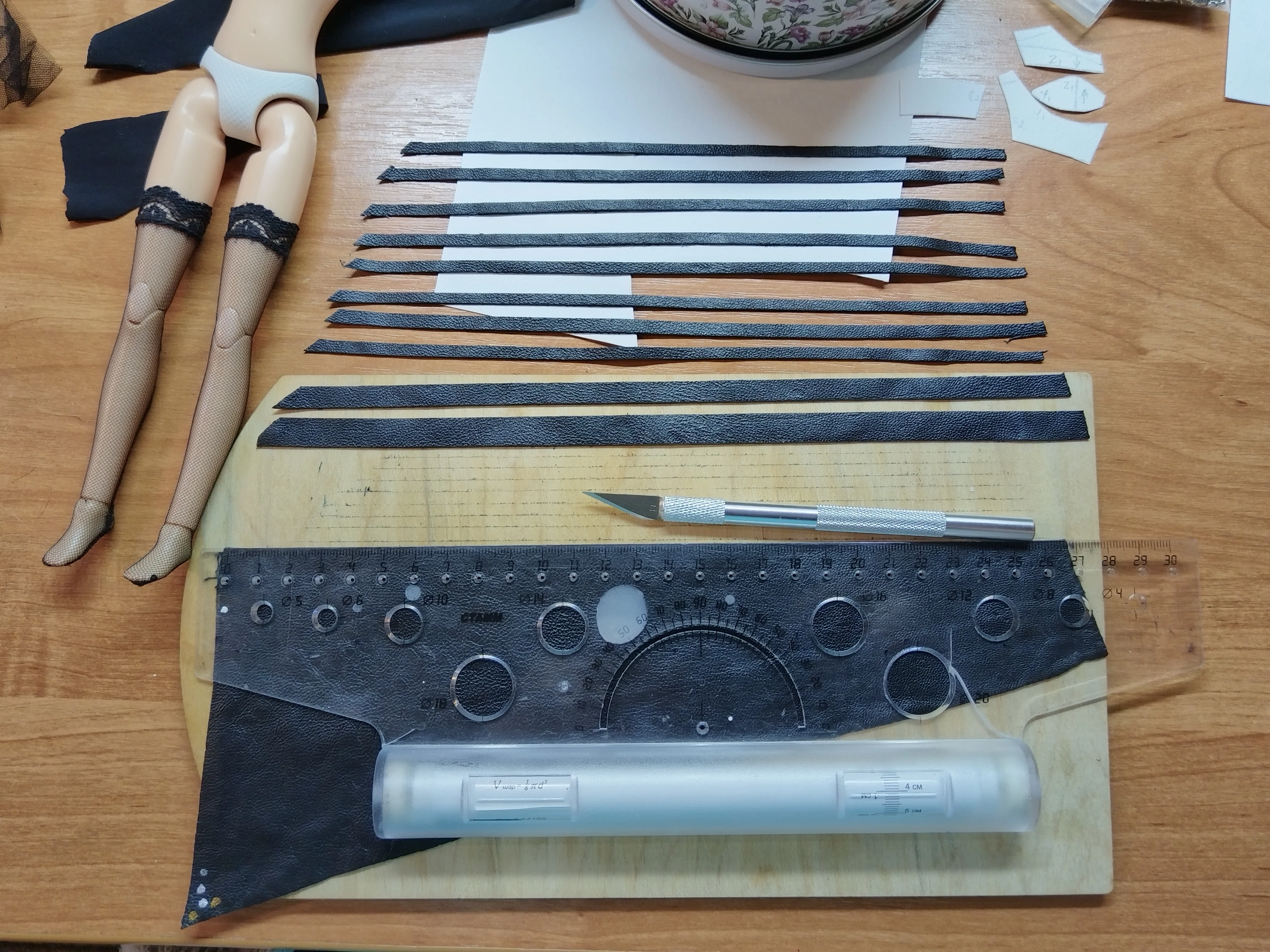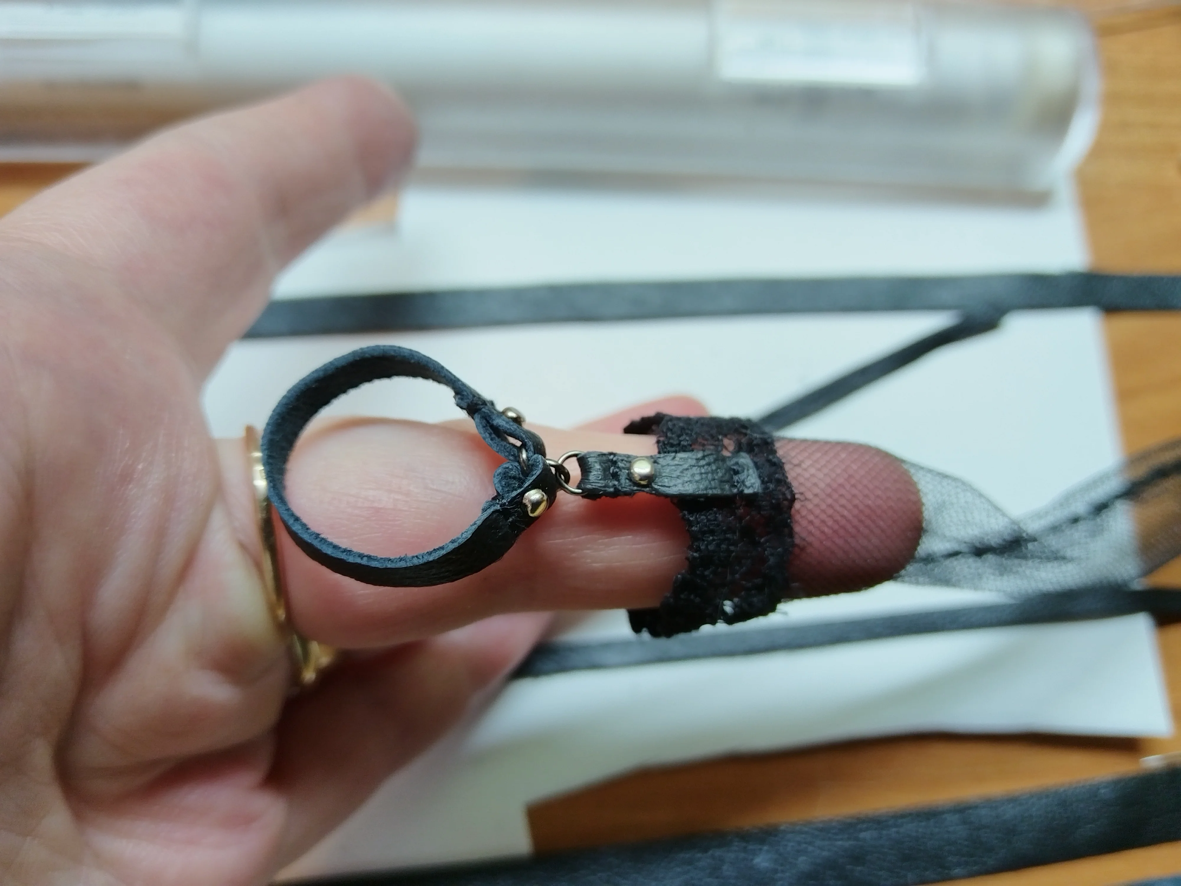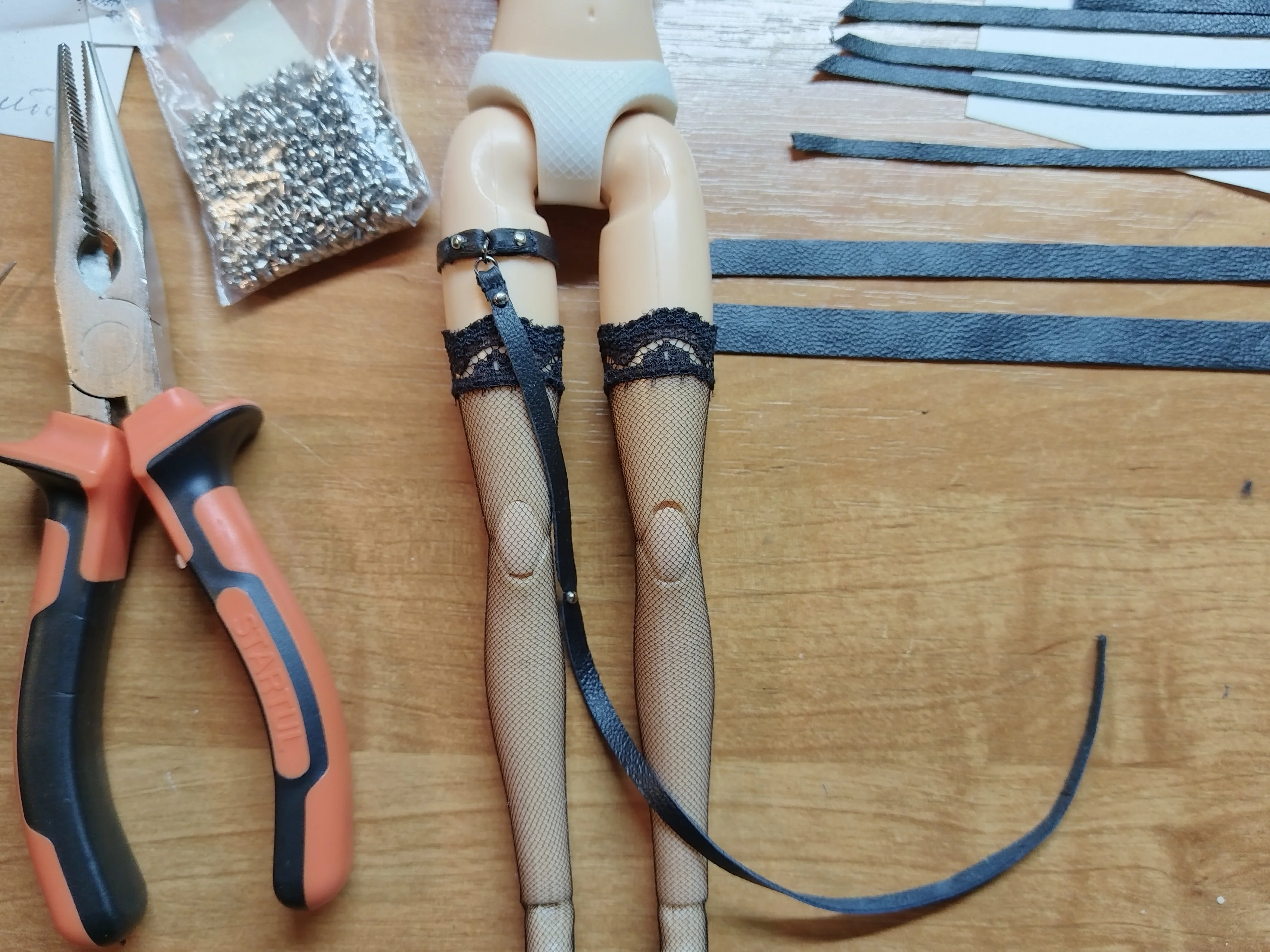 У нас появилась основа топика и подвязка на чулке.