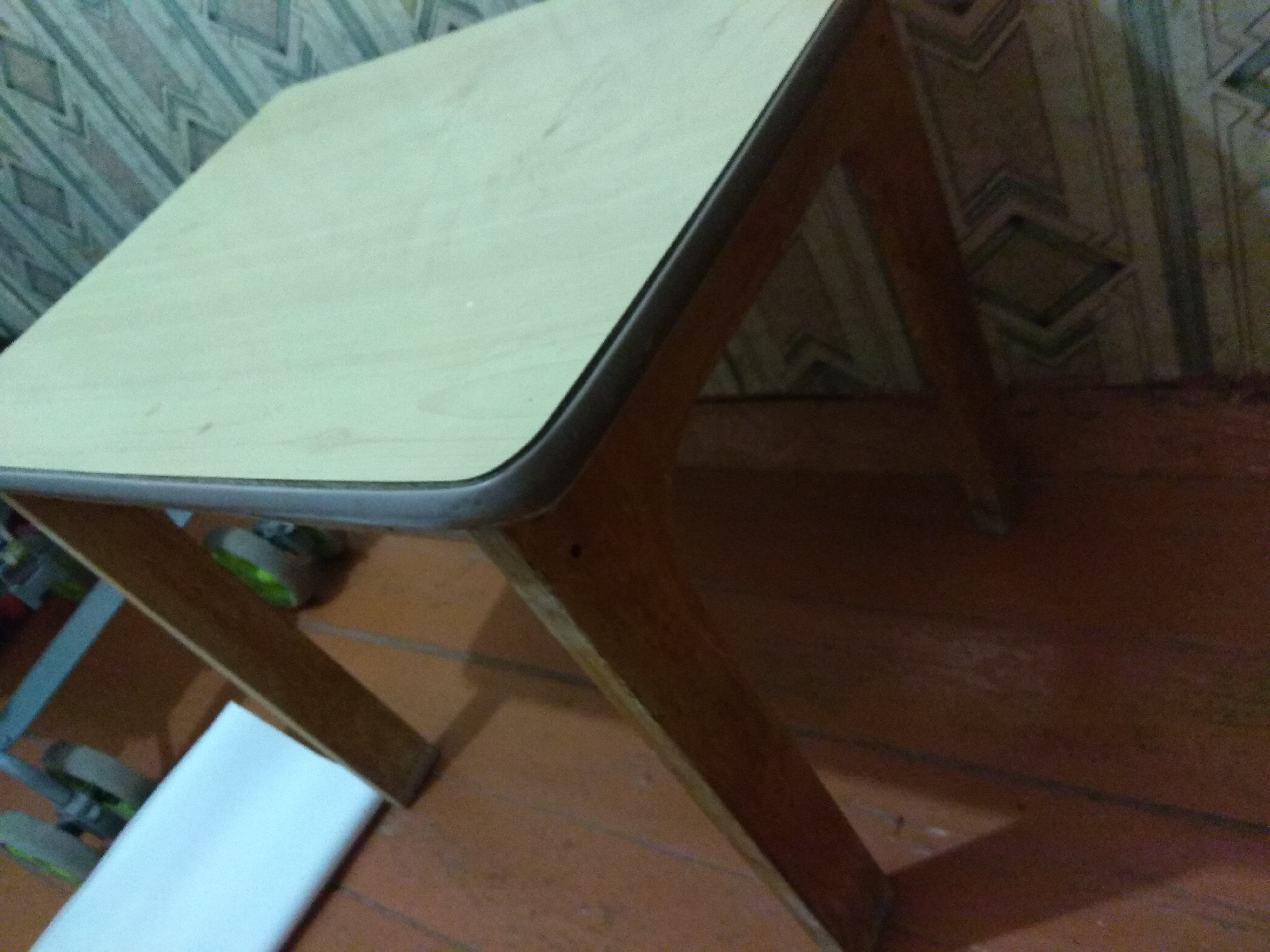 5. Разобрала, пошкурила, зашпаклевала дыры в старом детском столике. Был такой, теперь пока вот в таком состоянии: