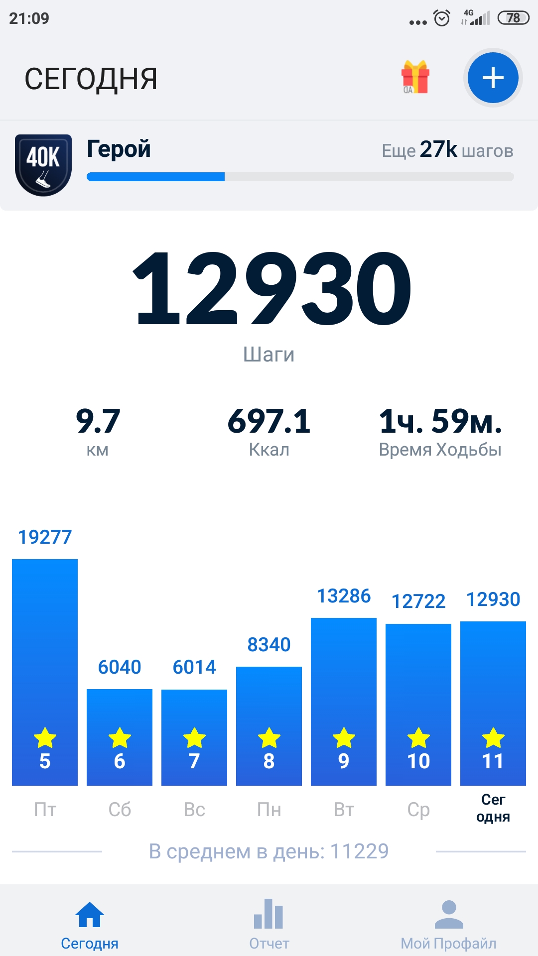 Сегодня 25.08.2021 пройдено 9,54 км. Всего во втором этапе пройдено 146,5 км.