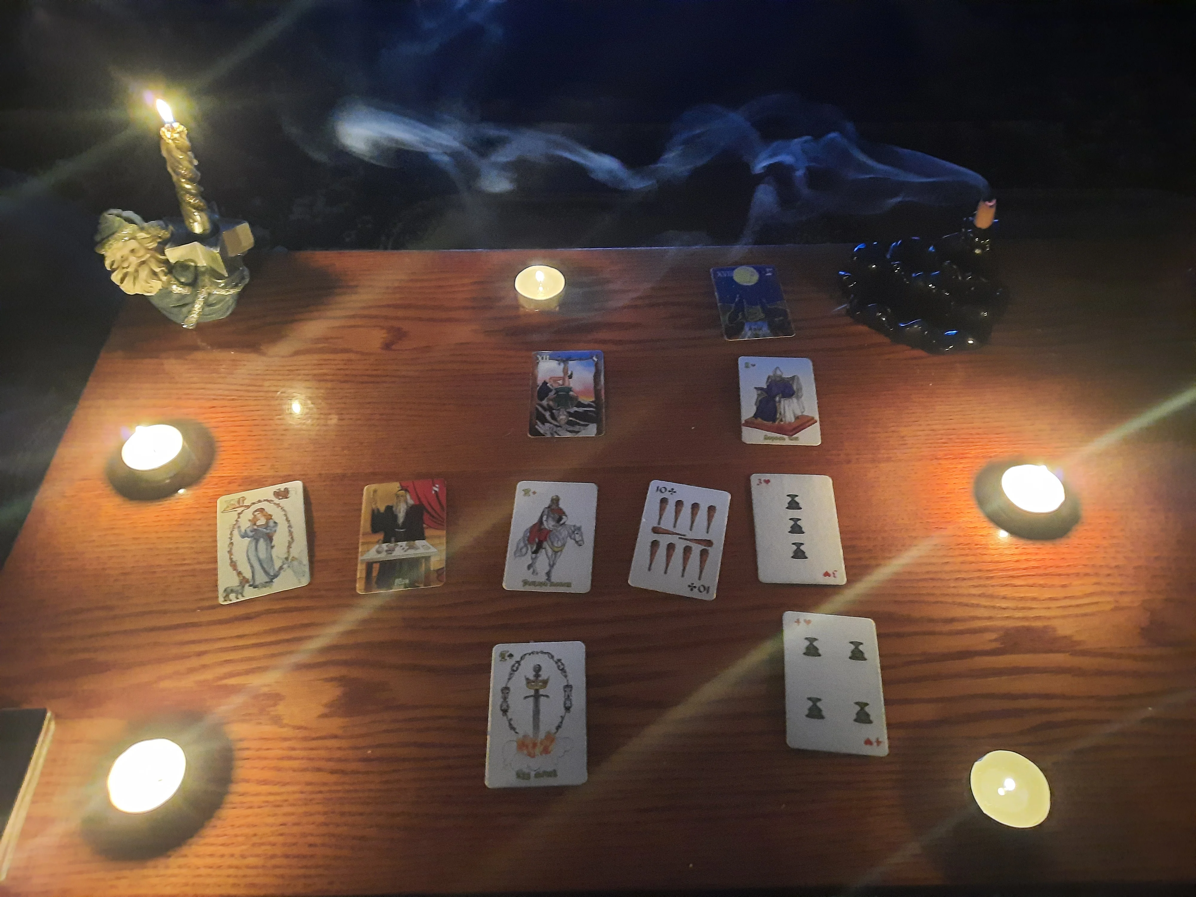 Я тоже смотрю, Дашуля)У нас с подружками с юности на святки встречаться традиция. Скорее встречи,ради встречи. В этом году я таро припёрла. Сделали атмосферное фото. Посмотреть вложение 1863754