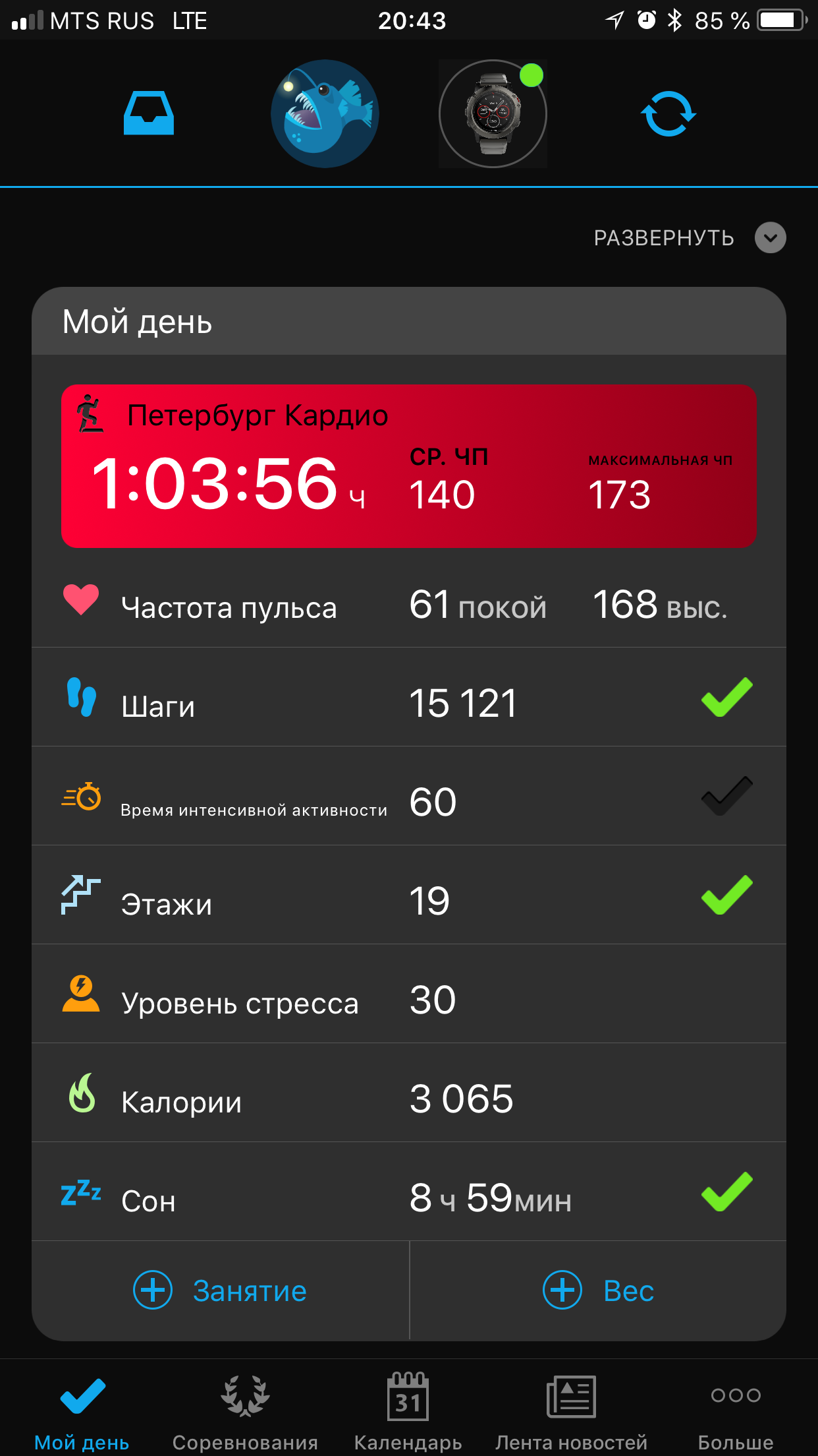 Приложение Garmin Connect. У меня работает с часами Garmin Fenix 5x и нагрудным кардио датчиком для триатлона.