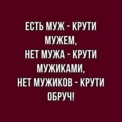Памятка женщинам: 1. Важно иметь мужчину, который помогает дома, убирает, иногда готовит и имеет работу. 2. Важно иметь мужчину, у которого есть чувство юмора. 3. Важно иметь мужчину, которому можно доверять и который вас не обманет. 4. Важно иметь мужчину, с которым хорошо в постели и которому вы нравитесь.
