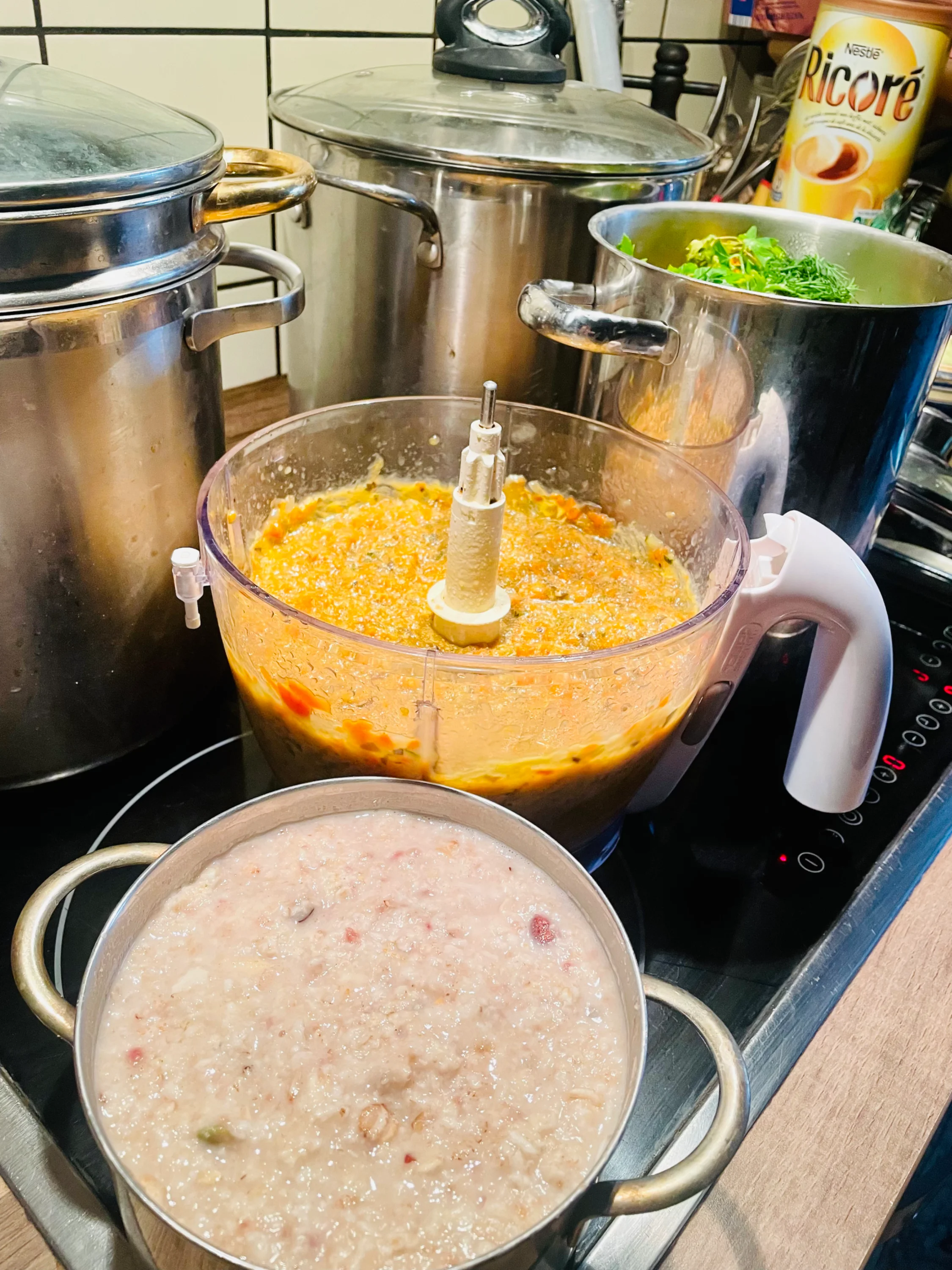 Остывает , позже смелю блендером . Цвет мне очень понравился . И вкус