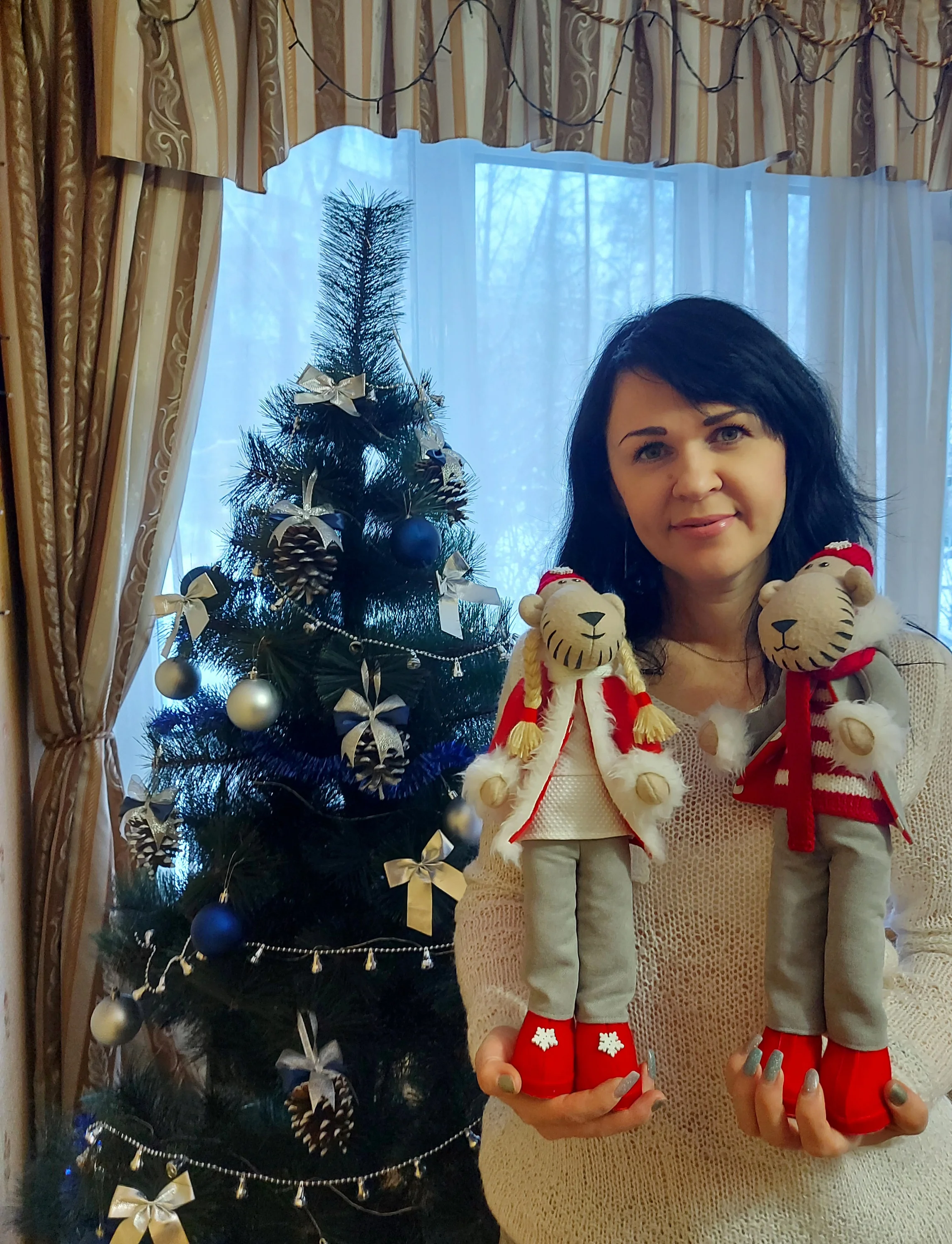 Это был очень интересный проект для меня. Игрушки полностью сшиты вручную. Одежда на машинке. Свитер у тигра, шарфы и шапки на спицах N2.