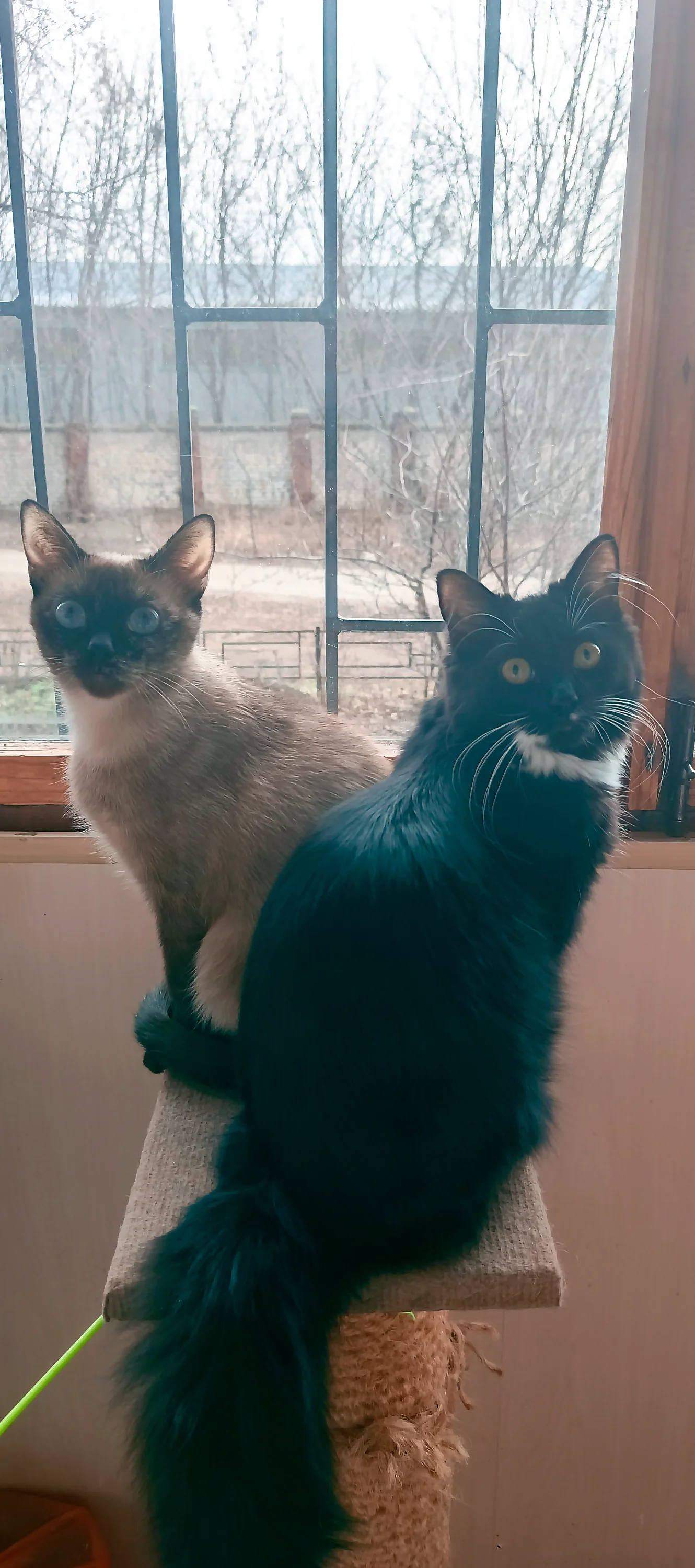 Черную в сентябре на улице подобрала котенком. Другая с нами уже 6 или 7 лет, точно не помню, ее мы из деревни забрали, соседская кошка окотилась, сосед умер, она у родителей в сарае шить стала