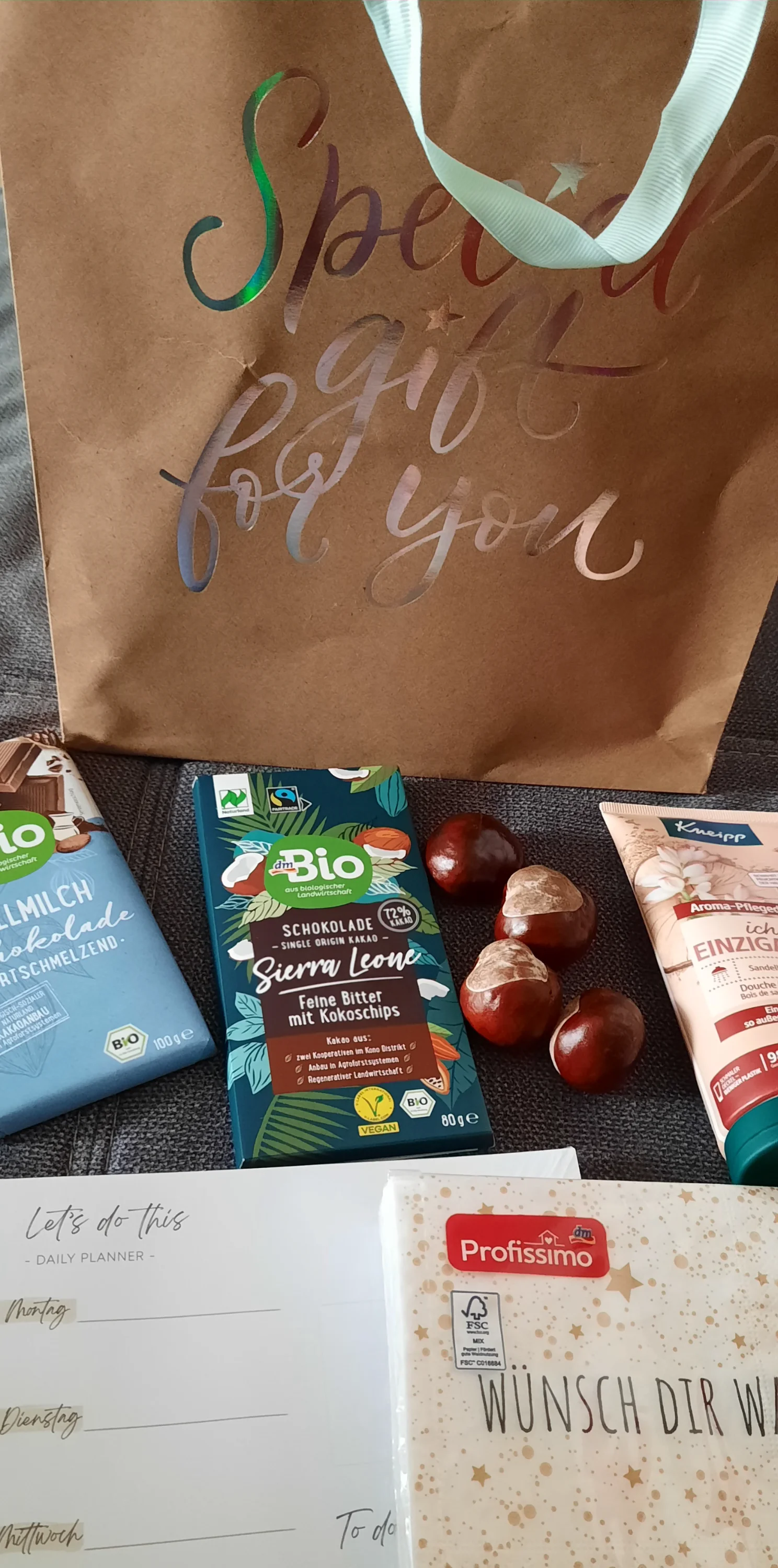 Дочь купила мне такие подарочки. Мелочь, но приятно. И цветы ещё.