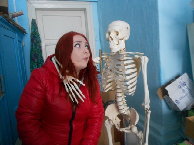Не пойму к чему такая красивая девушка со скелетом)