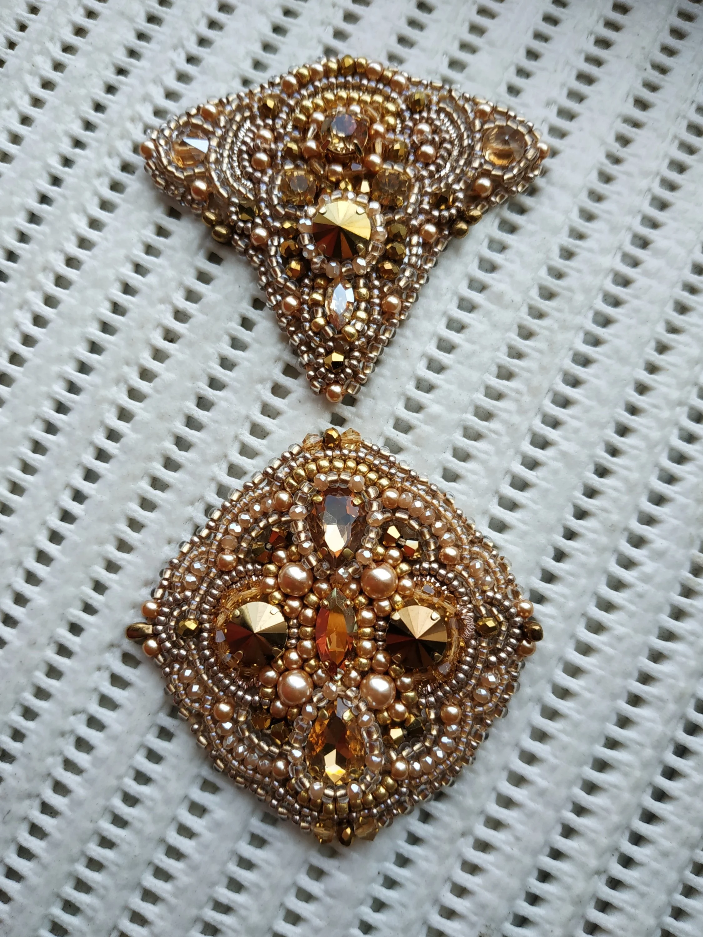 А вот вышивкой тебе заняться думаю можно. Затягивает, за уши оттащешь!)) Я всё никак не могу комплект декоративных элементов до ума довести, пока две штуки готовы, вышика бисером+стразы: