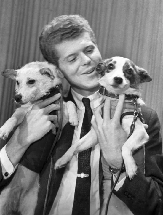 Лауреат I Международного конкурса им. Чайковского американский пианист Ван Клиберн с Белкой и Стрелкой, 1960 год, Москва, СССР