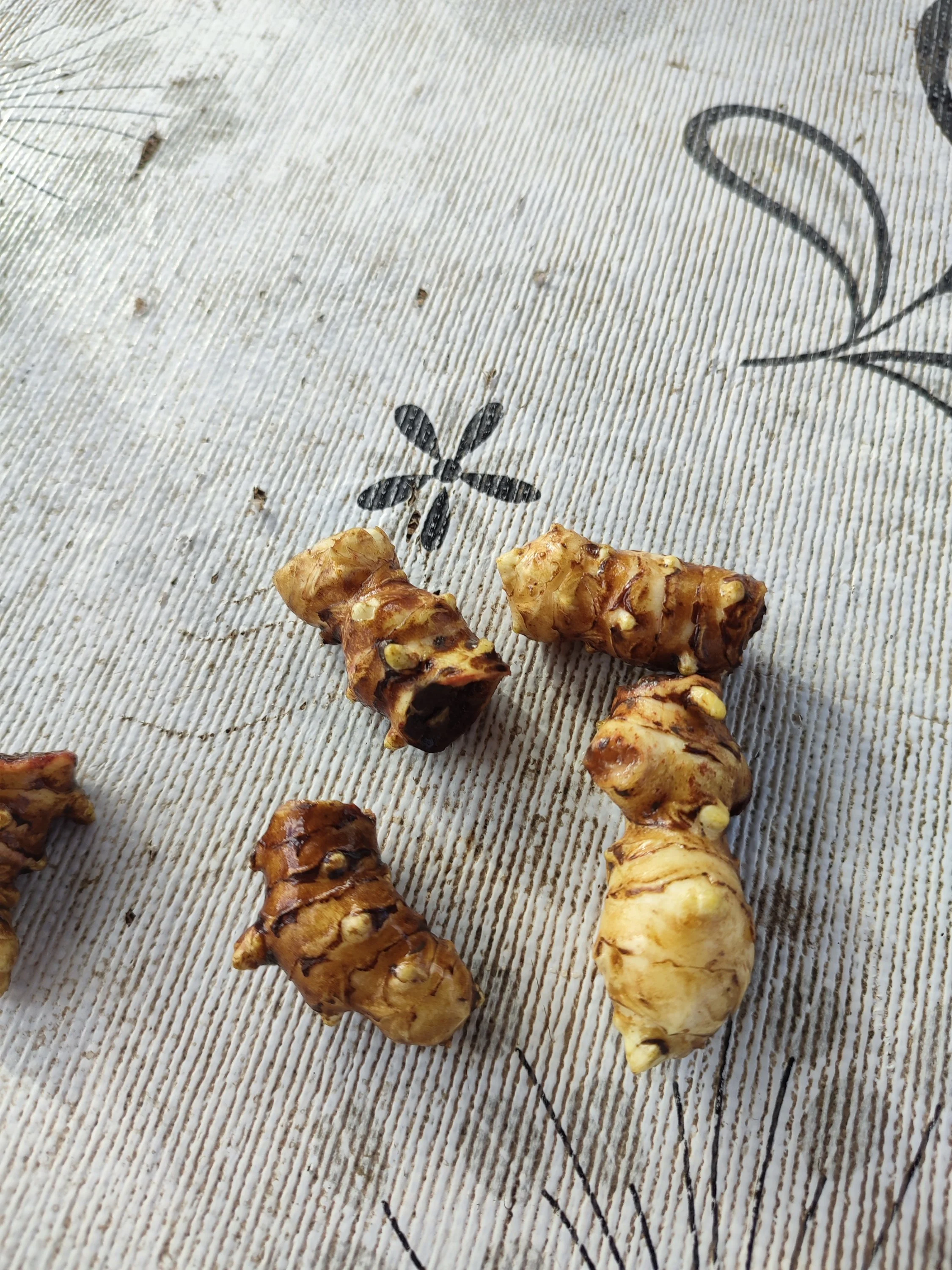 Тоже на вид и вкус топинамбур, но какой-то дефективный...думаю это редкий сорт карликового нецветущего топинамбура (шутка)