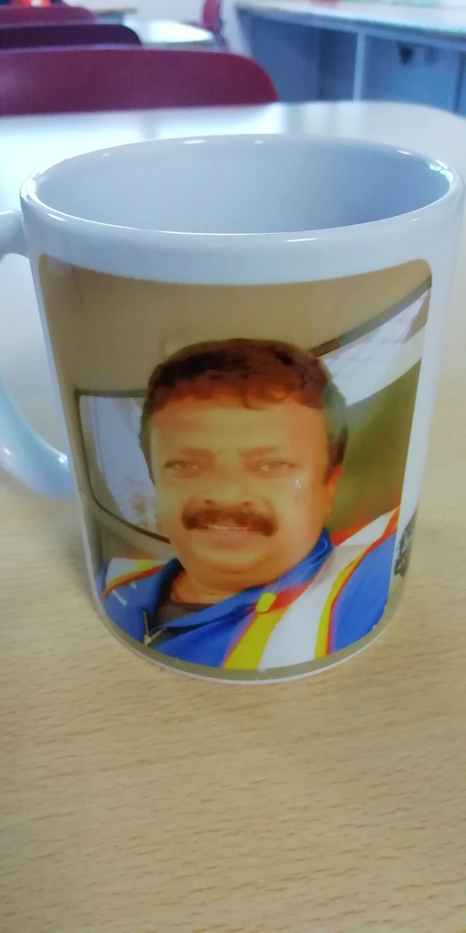 Сели чай попить. На моей кружке фото владельца кружки
