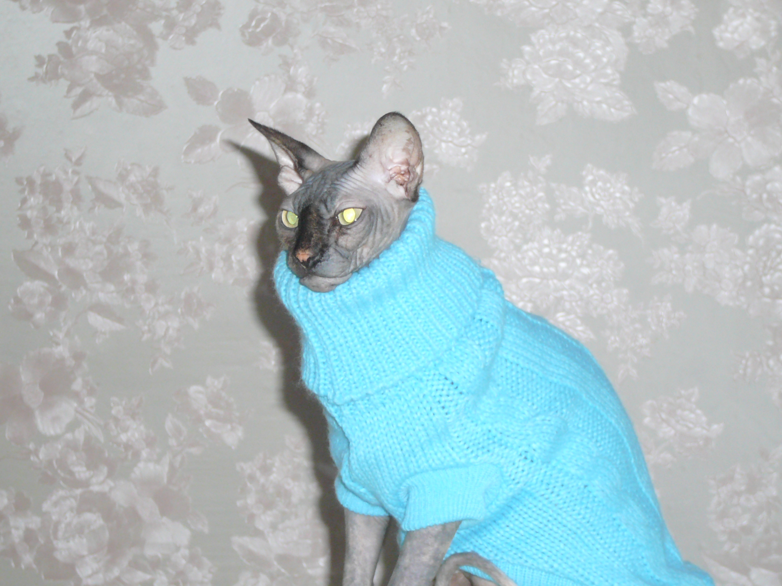 . Я Юське из своего свитера делала одежку, когда в мае отопление выключили. Тот еще франт был