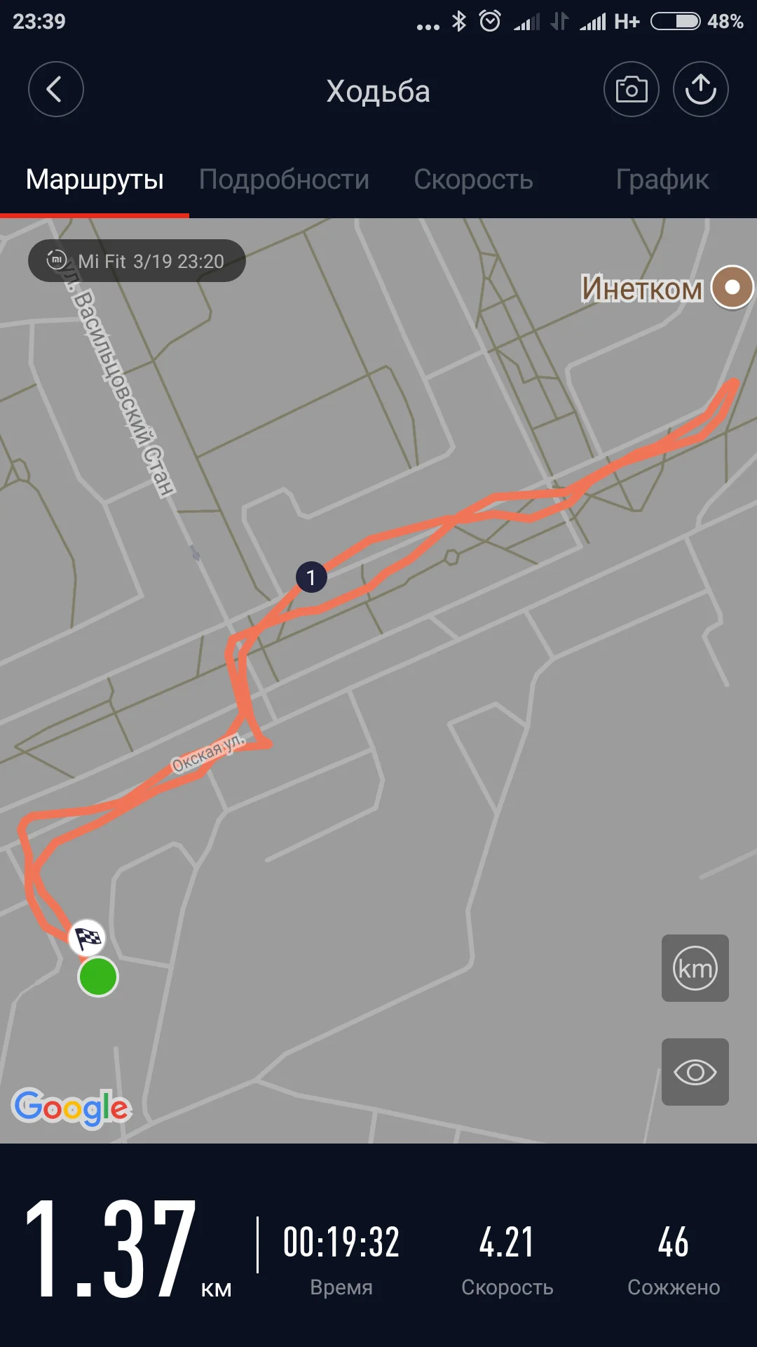 18.03, 3,3 км. Что ходьба, это я неправильный вид активности выбрал, ошибся...