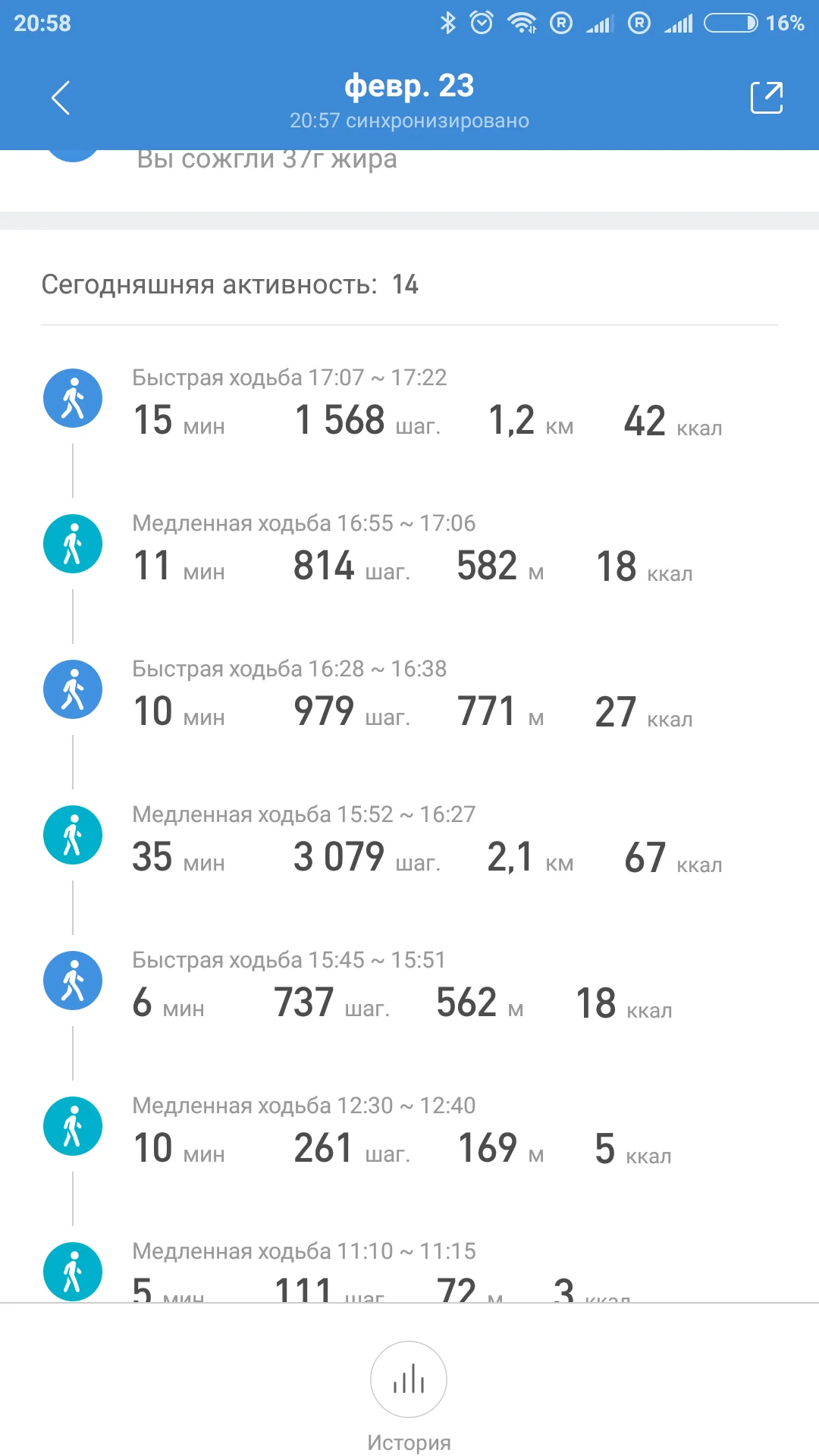 Я писал максимальную прогулку по скрину. То есть наверное ты смотришь общую цифру - это за день, неправильно будет считать... Я смотрю максимальную непрерывную цифру. На самом деле конечно больше прошли, но активность не активировали, такие скрины разовая акция. И считают у нас одинаковые браслеты по-разному. Вообще с шагами например у нас разница очень большая. Раза в полтора у меня больше почти всегда, хотя ходим почти одинаково...