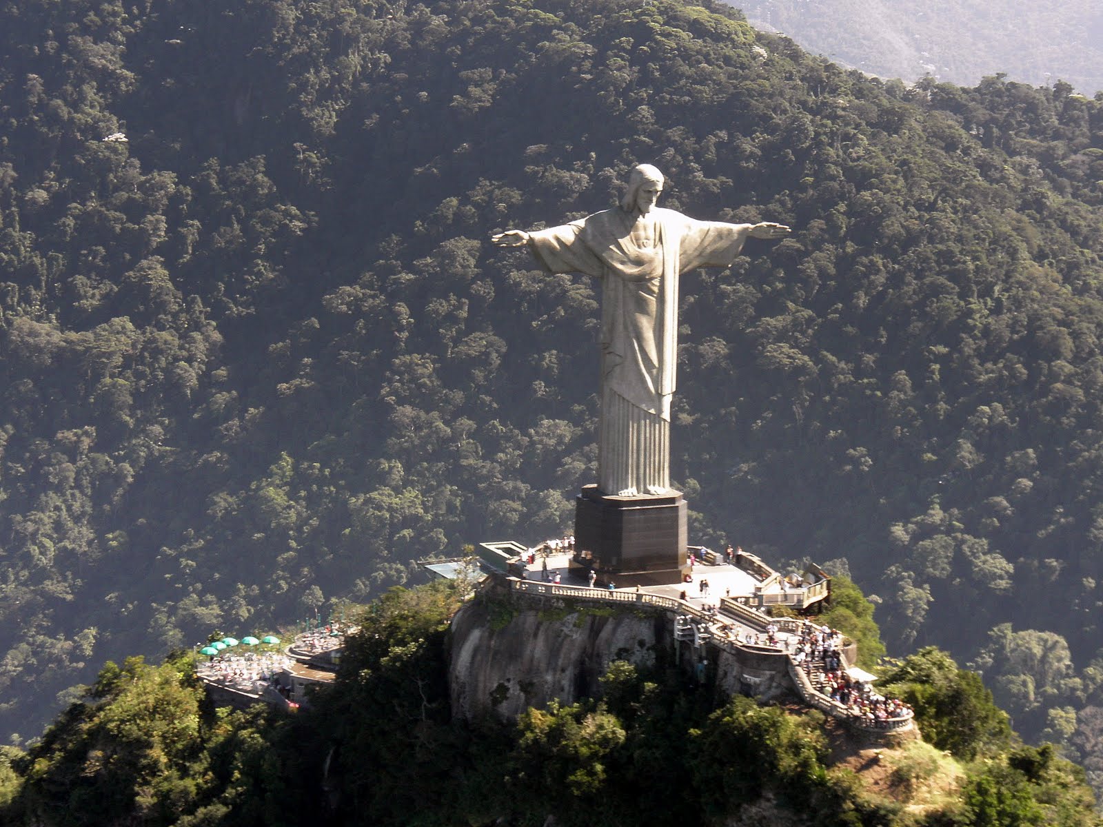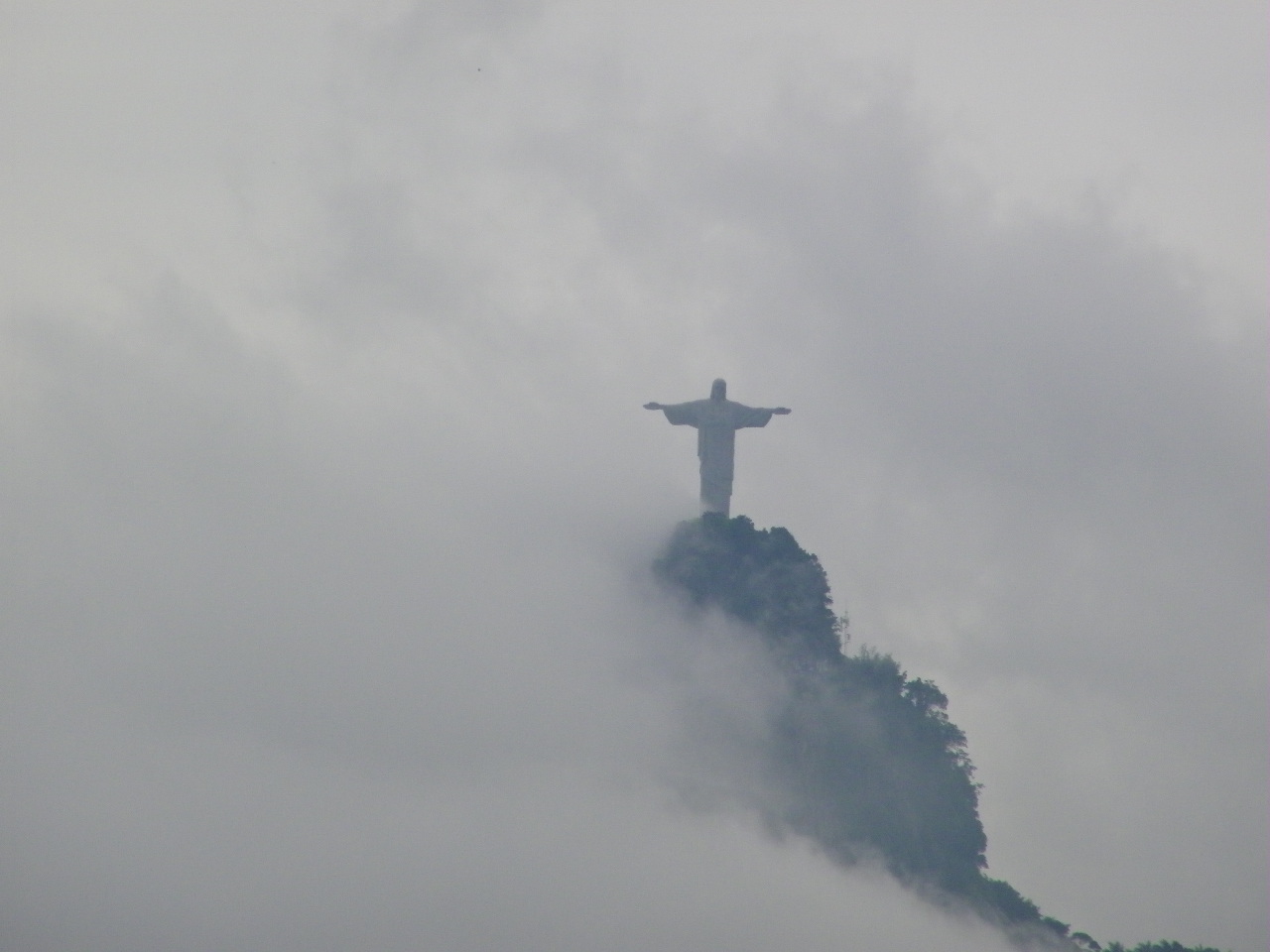 Христос распростёр руки над огромным городом, словно благословляя миллионы живущих в нём людей. Далеко внизу остались дома, улицы с разноцветными пятнышками машин, длинная жёлтая полоса, тянущаяся вдоль залива, а с другой стороны окаймлённая зеленью пальм — знаменитый многокилометровый пляж Копакабана. По другую руку Христа можно разглядеть не менее знаменитую чашу стадиона «Маракана», который прославили бразильские кудесники футбола, пятикратные чемпионы мира, международный аэропорт, а за гладью залива, с другой его стороны, в дымке тумана видны силуэты далёких гор.